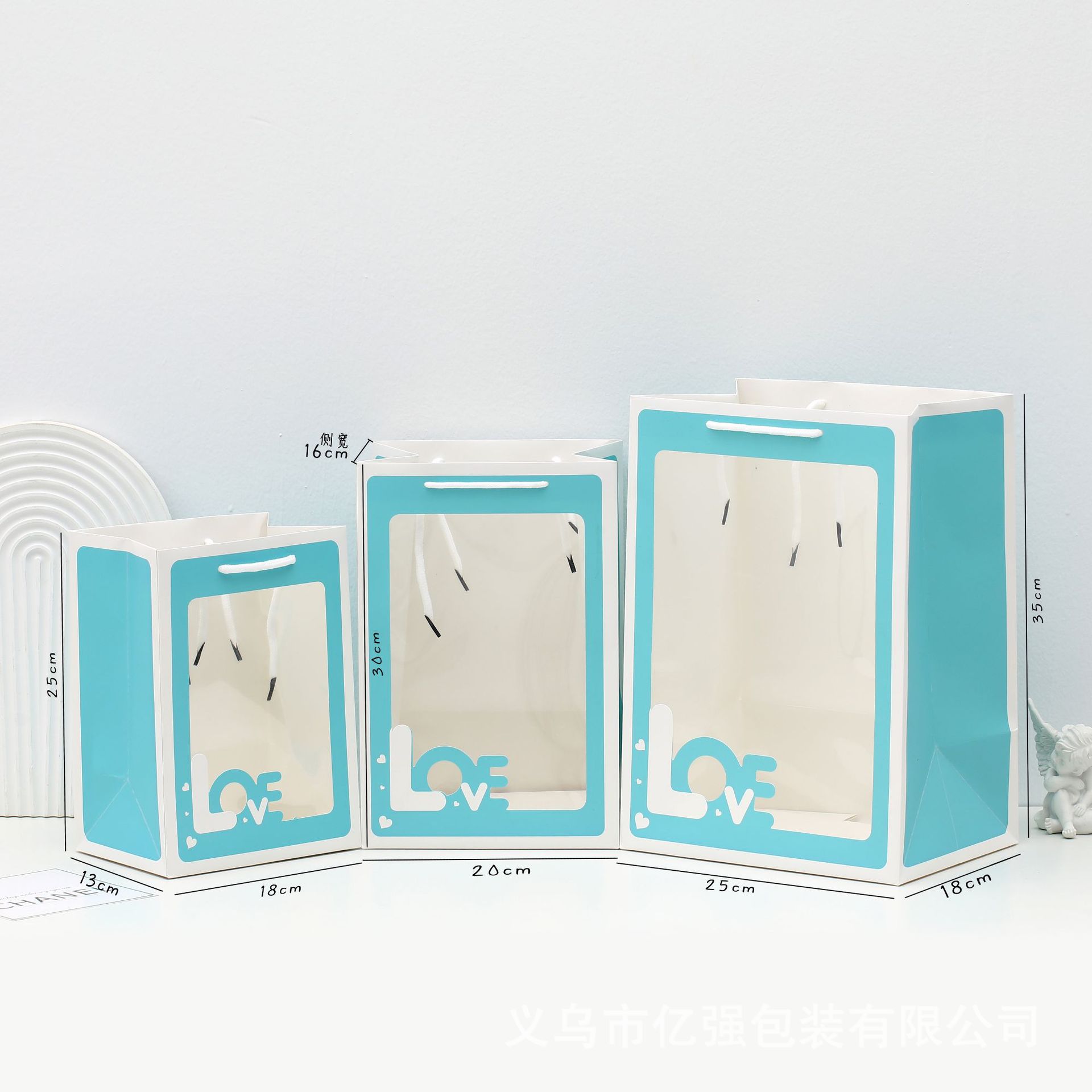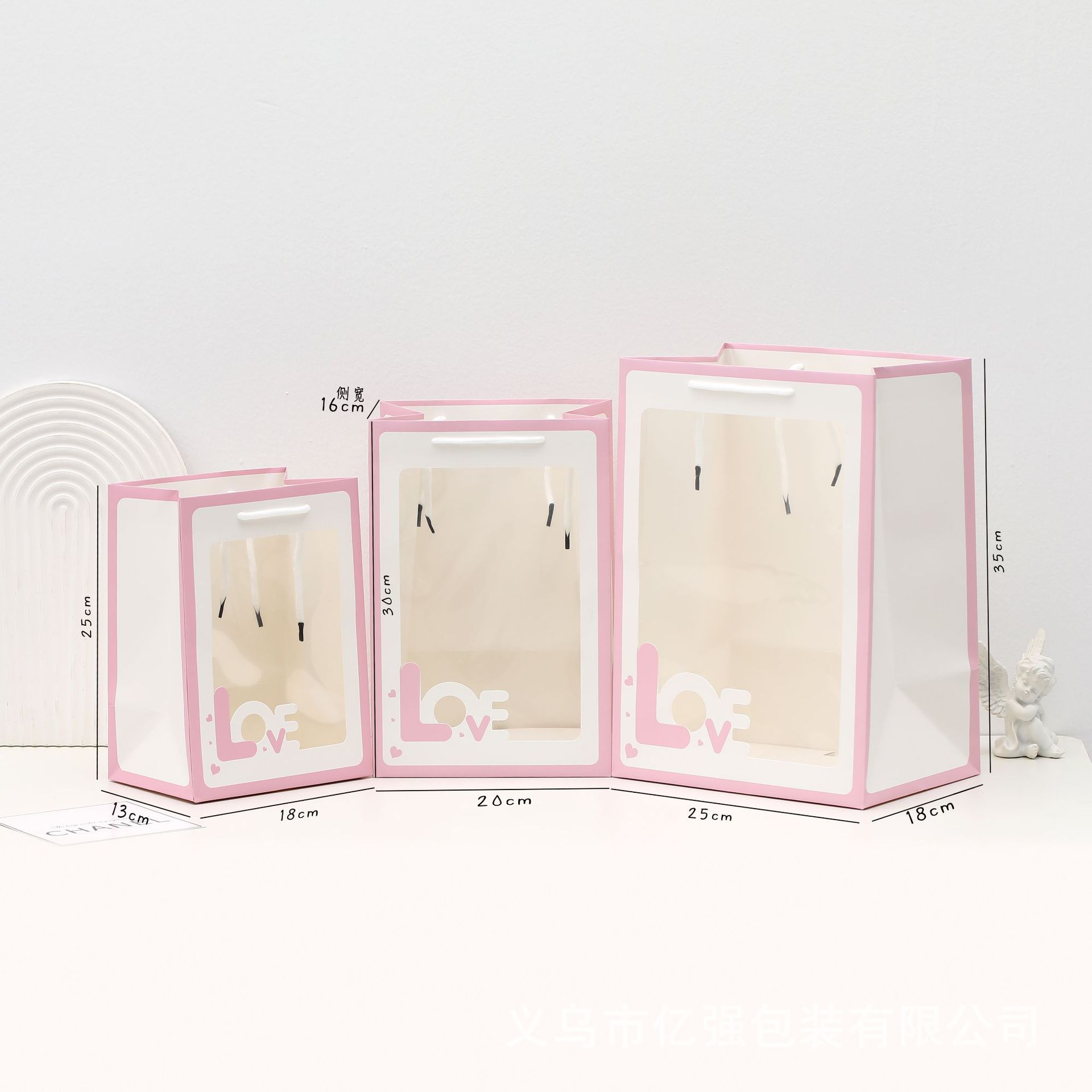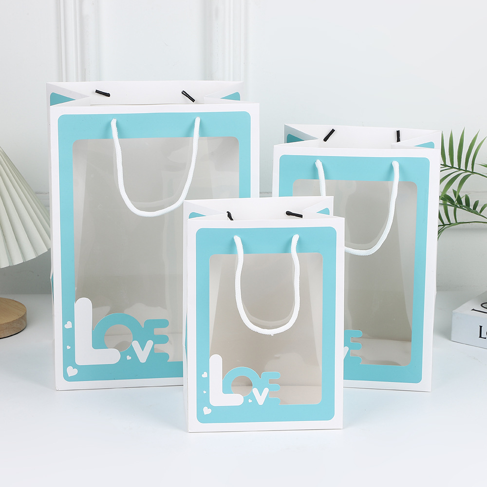 투명 창 핸드백, 선물 포장 가방, 고급 종이 가방, 발렌타인 데이 꽃 선물 가방, 기념품 선물 가방