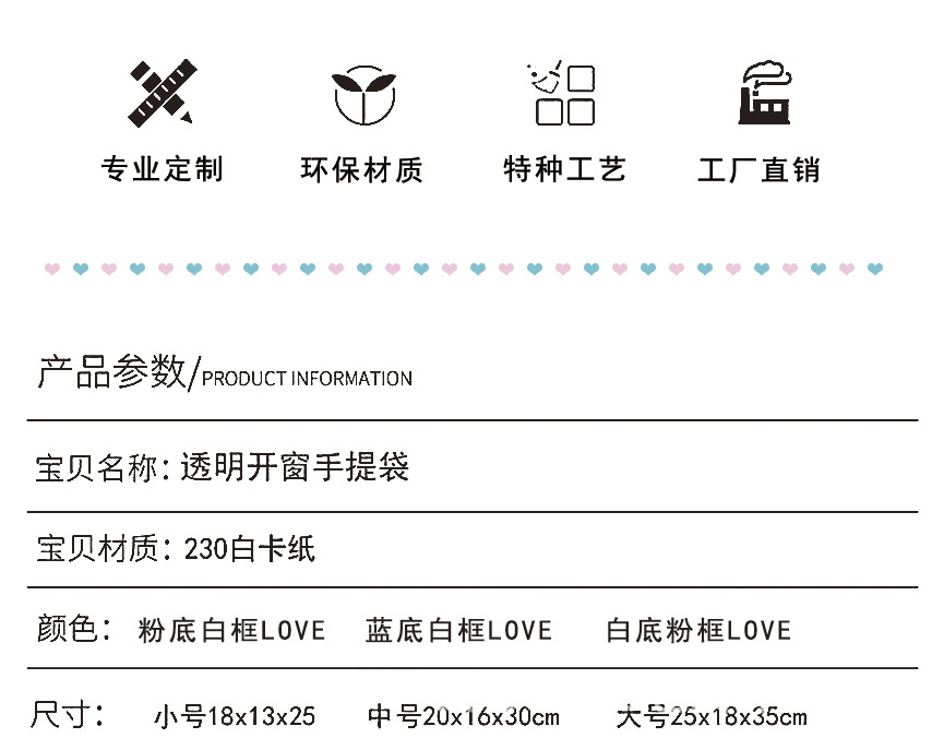 • 흰색 배경 핑크색 프레임 LOVE, 흰색 판지, 중간 크기 20*16*30