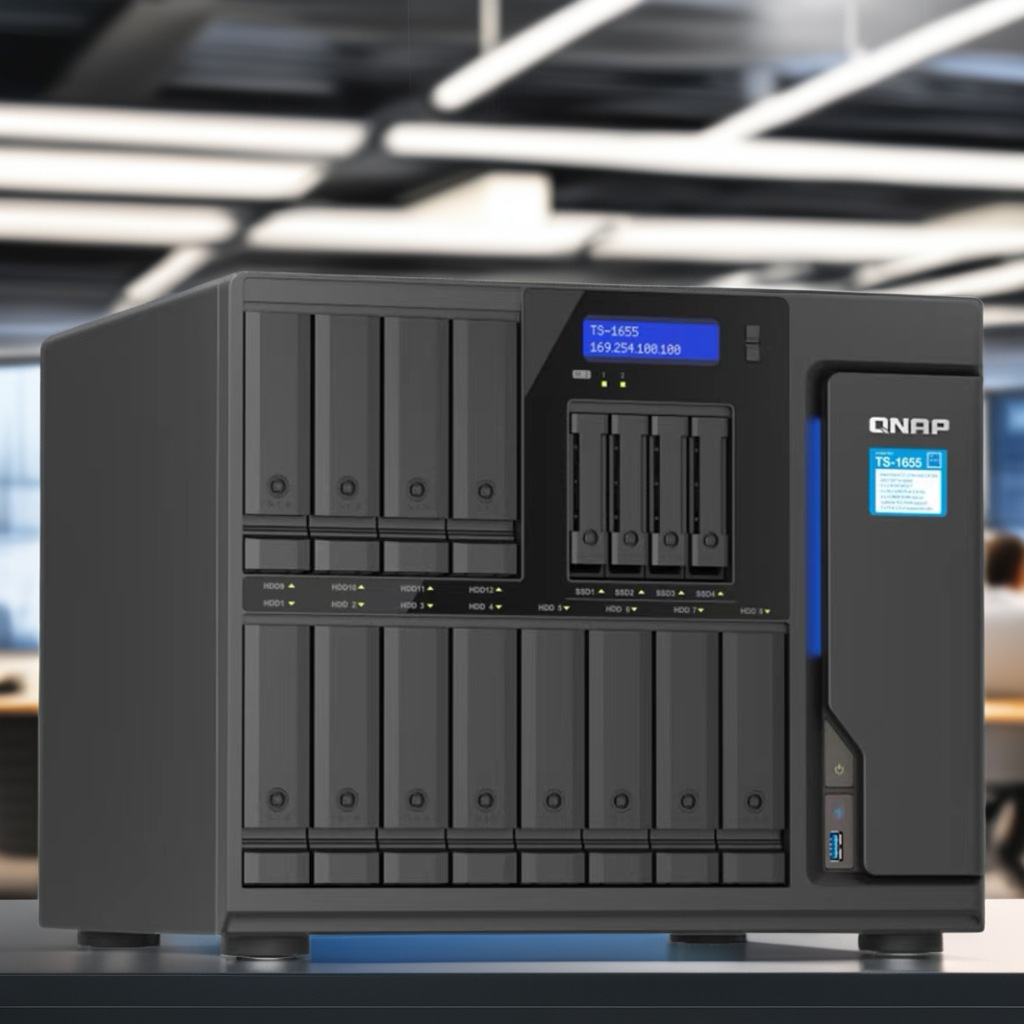 2.强大的存储解决方案: 此NAS服务器具有令人印象深刻的16托架扩展功能,多可支持12x3.5英寸和4x2.5英寸硬盘。它非常适合寻求灵活且可扩展的存储解决方案来处理大量数据的企业和个人。