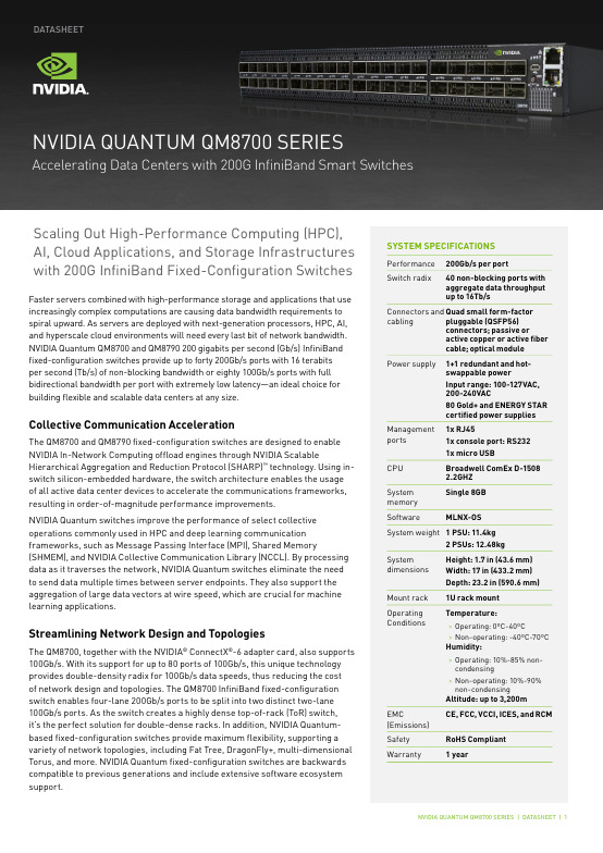 1.该产品是新的原始量子N-v-idia Mellanox QM9790工厂库存Quantum-2智能InfiniBand NDR交换机,采用高质量组件构建,旨在提供可靠的连接。