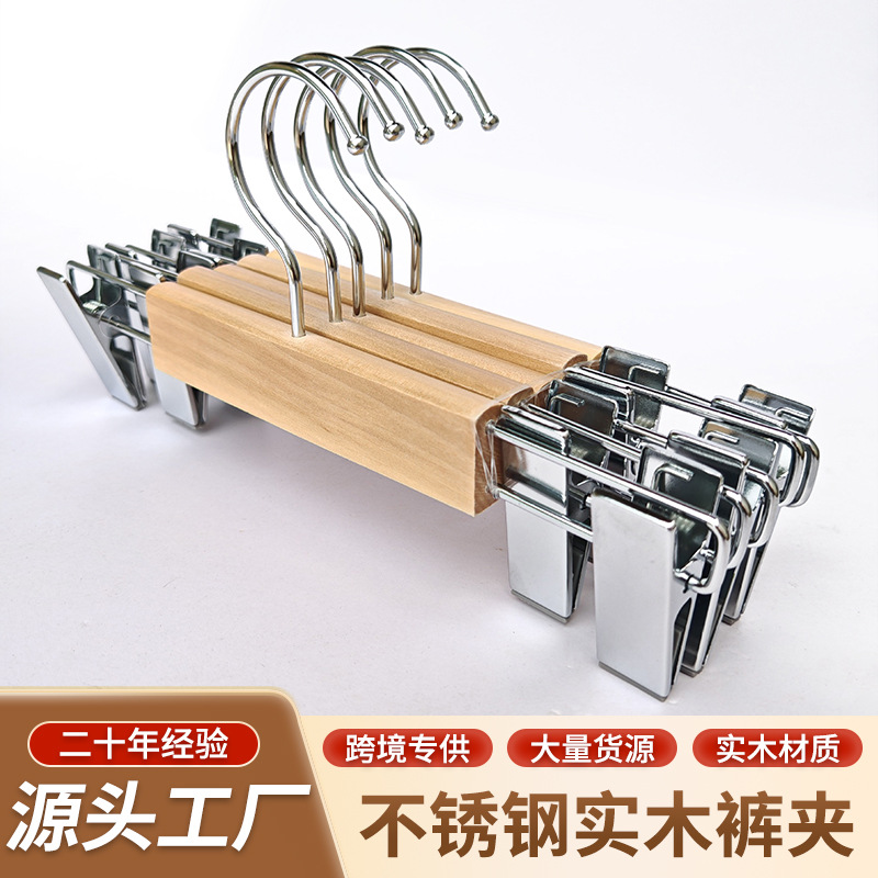 단단한 나무 바지 걸이 클립 스타일 가정용 수납 스커트 건조 스테인레스 스틸 바지 클립 의류 매장 특수 빨래 클립 사용자 정의스토어 가기