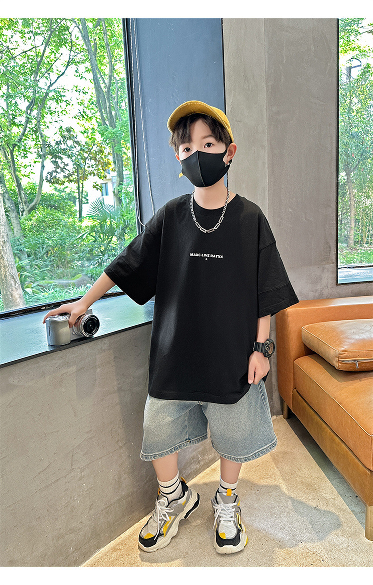 소년 반팔 티셔츠 2025 여름 새 스타일 중대형 어린이 느슨한 버전 얇은 탑 레터 순수 코튼 언더 셔츠스토어 가기
