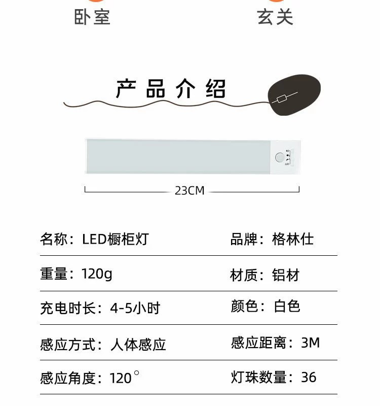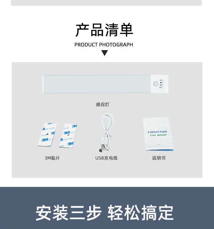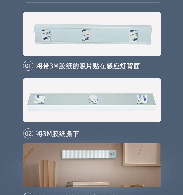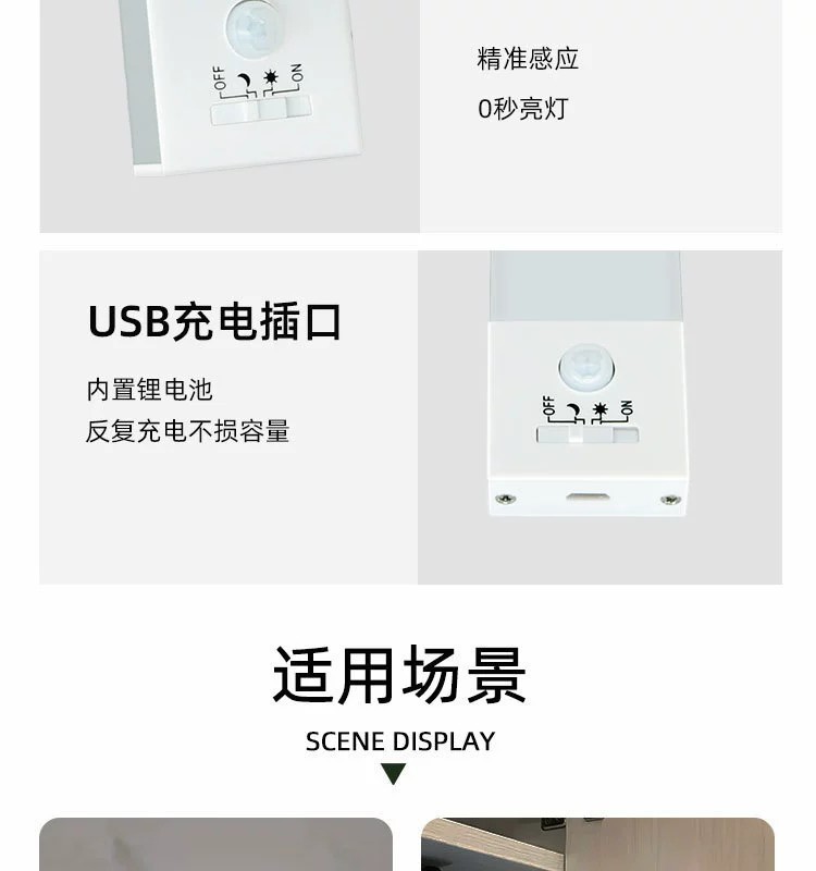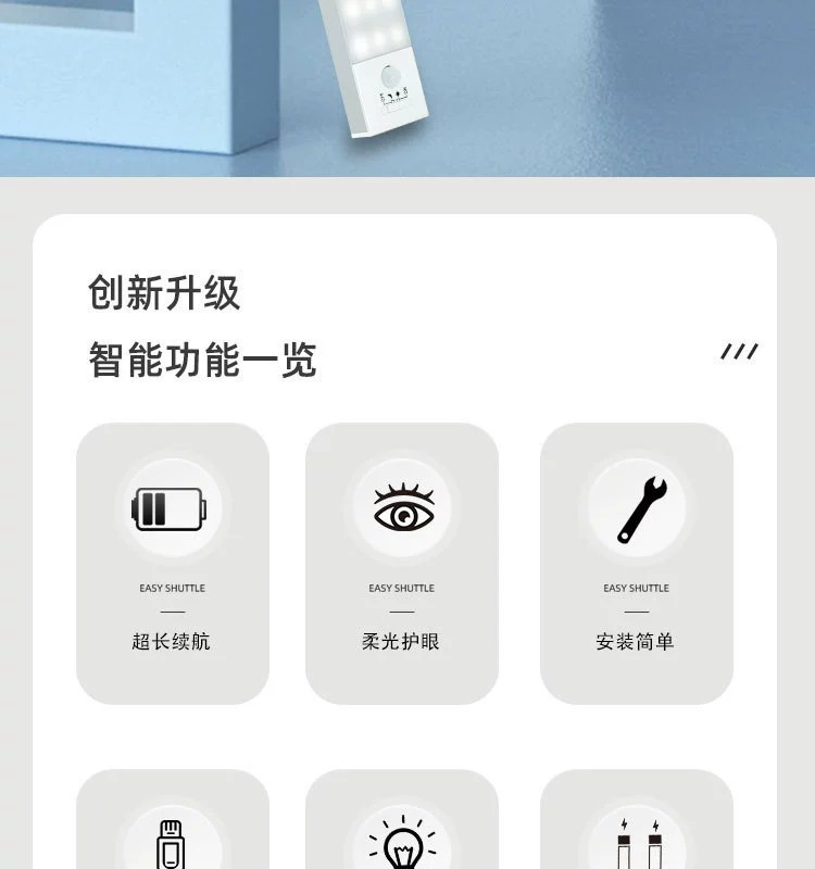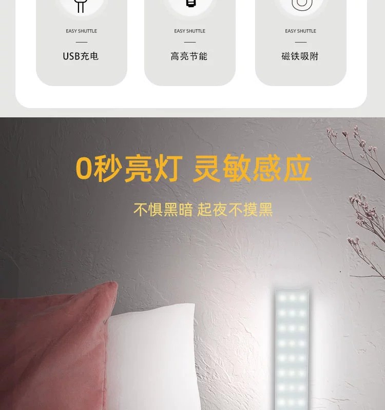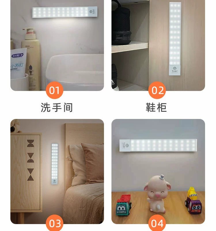 초박형 스마트 인체 감지등, 사람이 오면 켜짐, 배선 불필요, 소형 야간등, 캐비닛, 와인 캐비닛, 옷장, LED 복도등스토어 가기