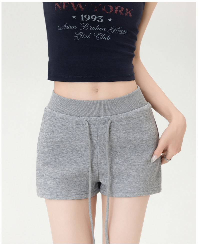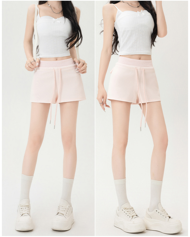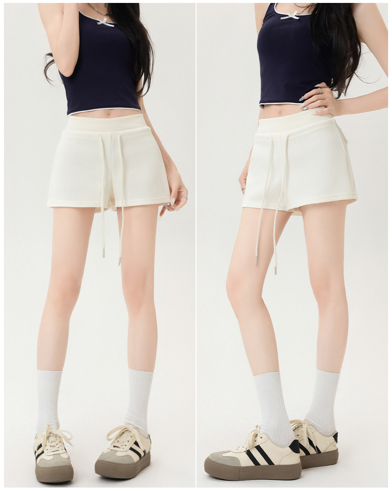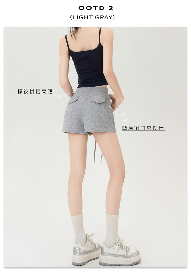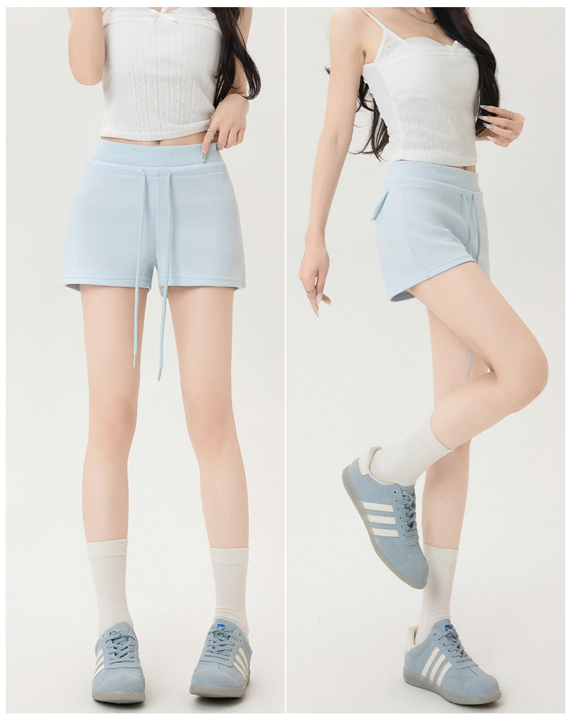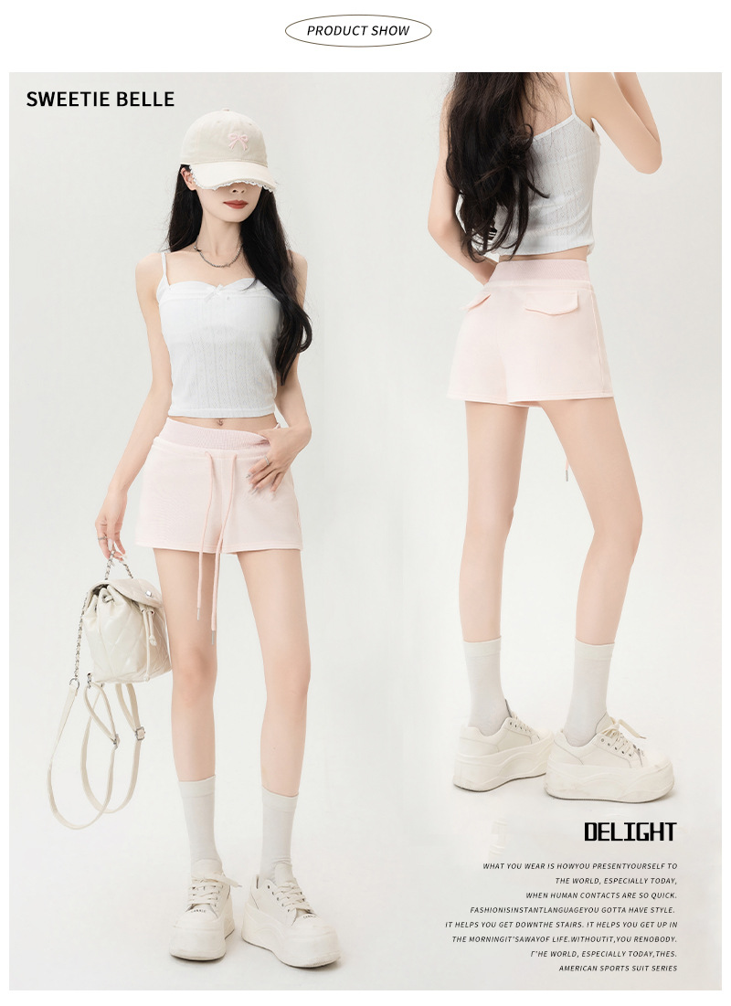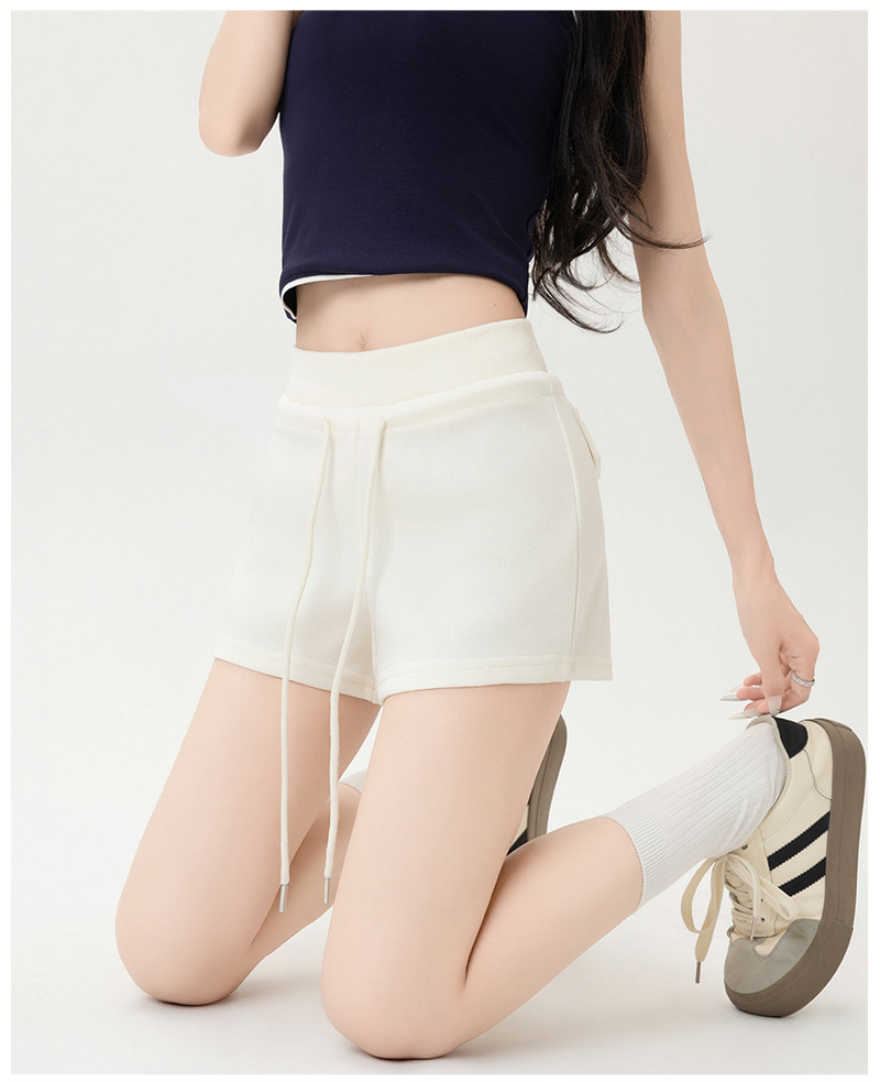 뜨거운 소녀 스타일 스포츠 반바지 여성 여름 스레드 스티칭 높은 허리 슬리밍 캐주얼 3 점 바지 슬림 핏 외투 핫 바지