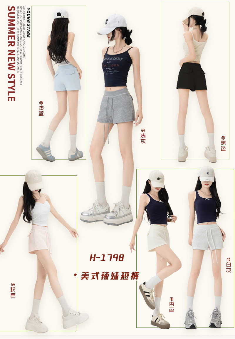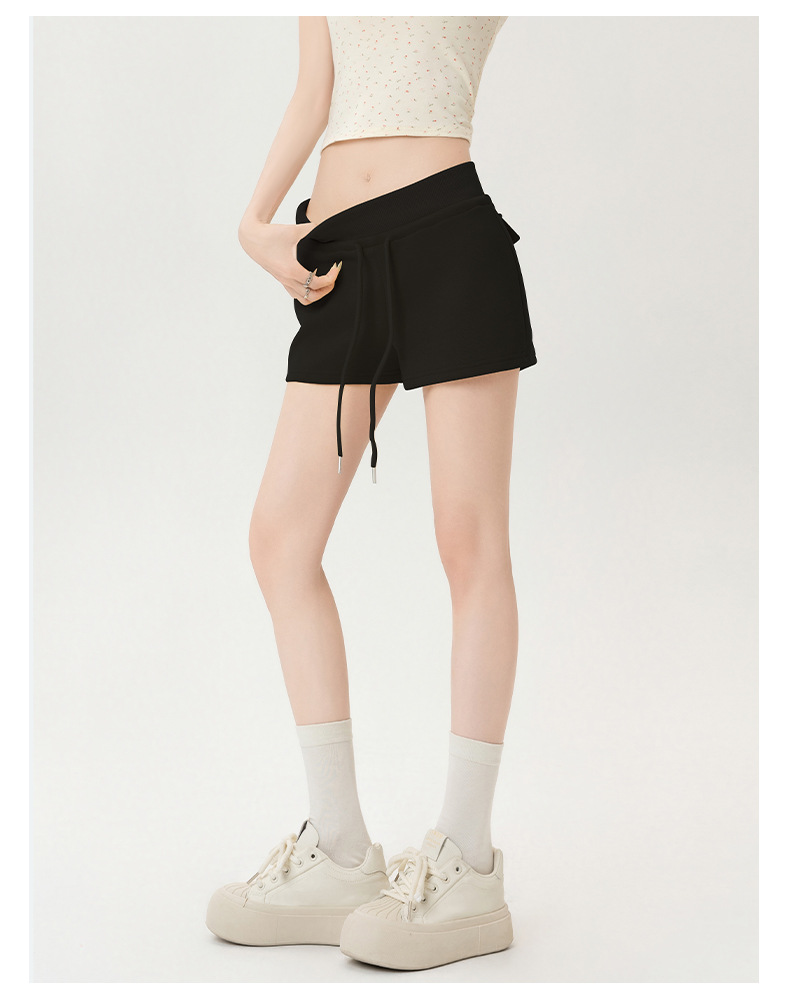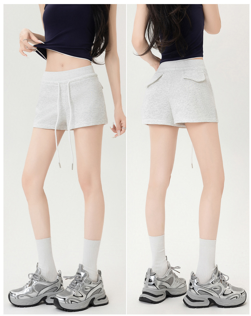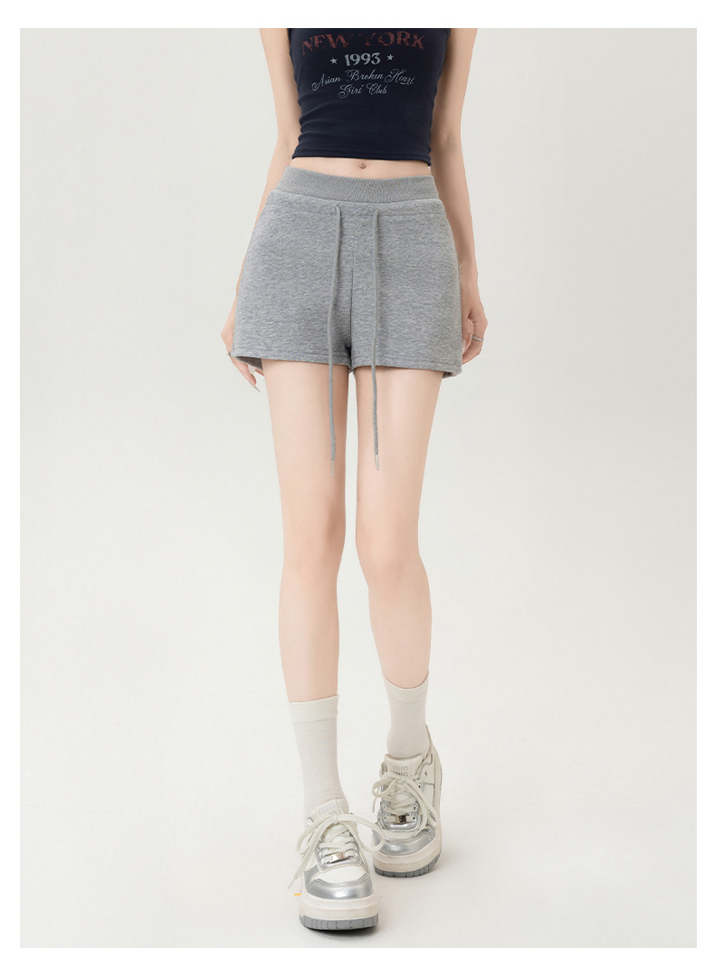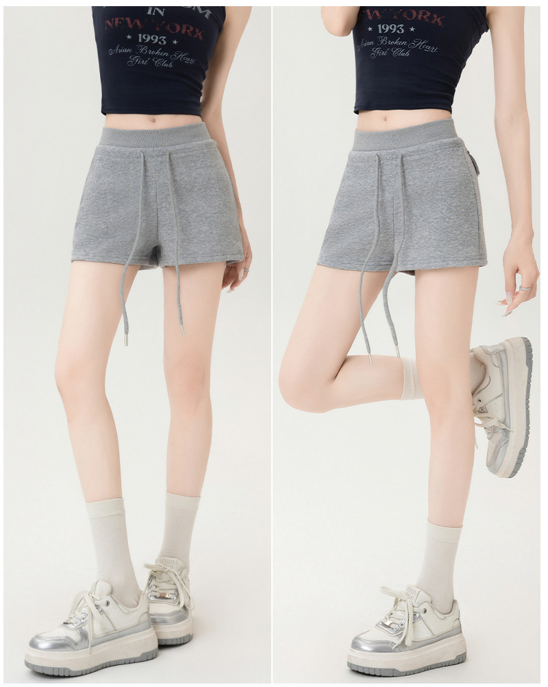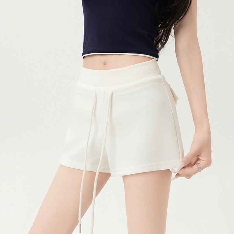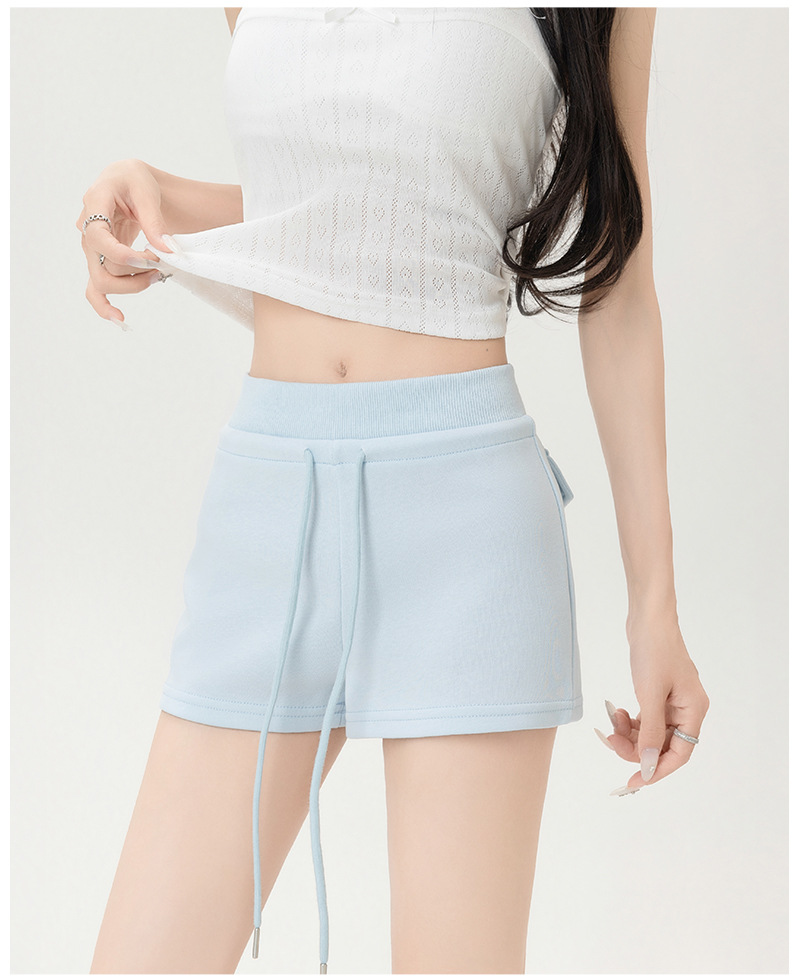 뜨거운 소녀 스타일 스포츠 반바지 여성 여름 스레드 스티칭 높은 허리 슬리밍 캐주얼 3 점 바지 슬림 핏 외투 핫 바지