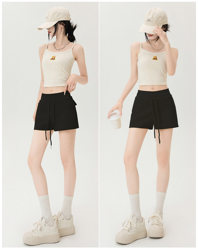 뜨거운 소녀 스타일 스포츠 반바지 여성 여름 스레드 스티칭 높은 허리 슬리밍 캐주얼 3 점 바지 슬림 핏 외투 핫 바지스토어 가기