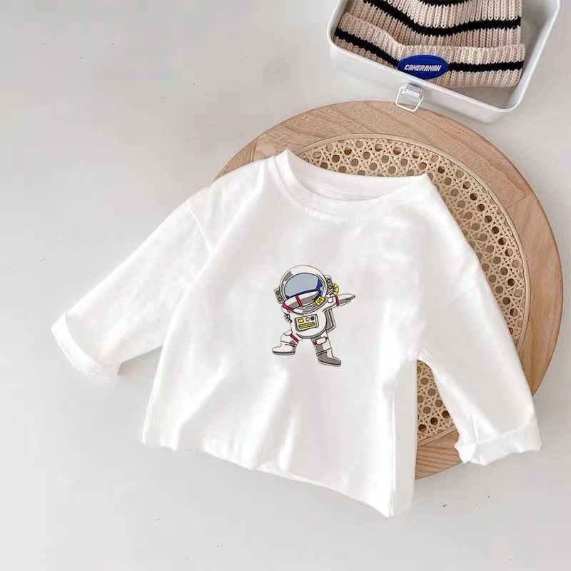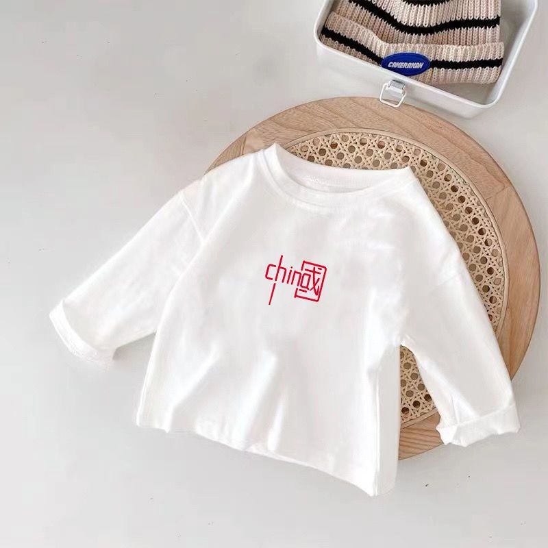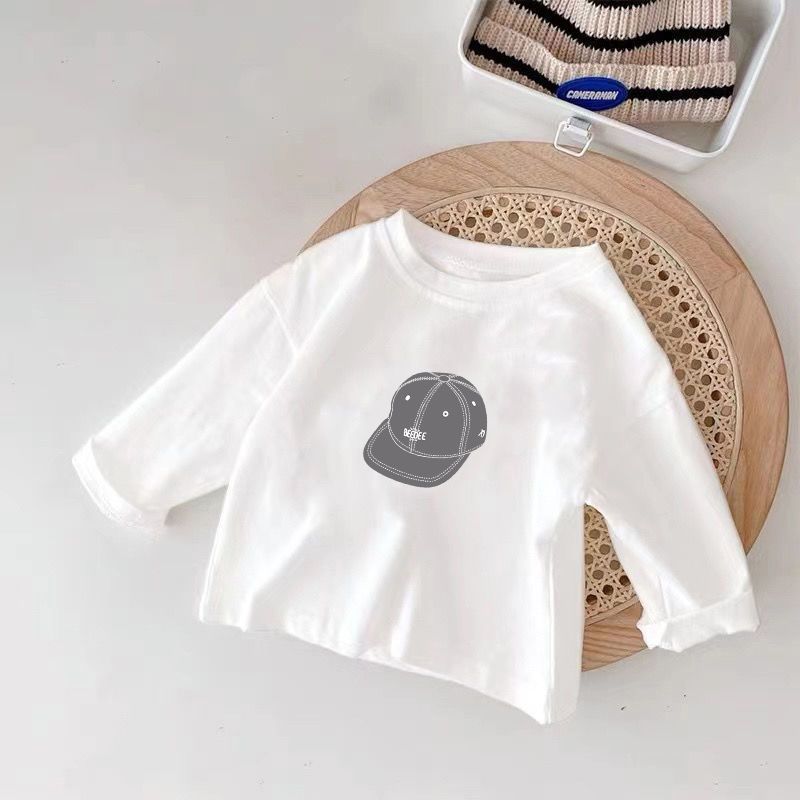 아동용 긴팔 티셔츠 순면 100% 얇은 흰색 봄, 가을 새로운 스타일 소년 소녀용 상의 소년 소녀용 바닥 셔츠 트렌디 T스토어 가기