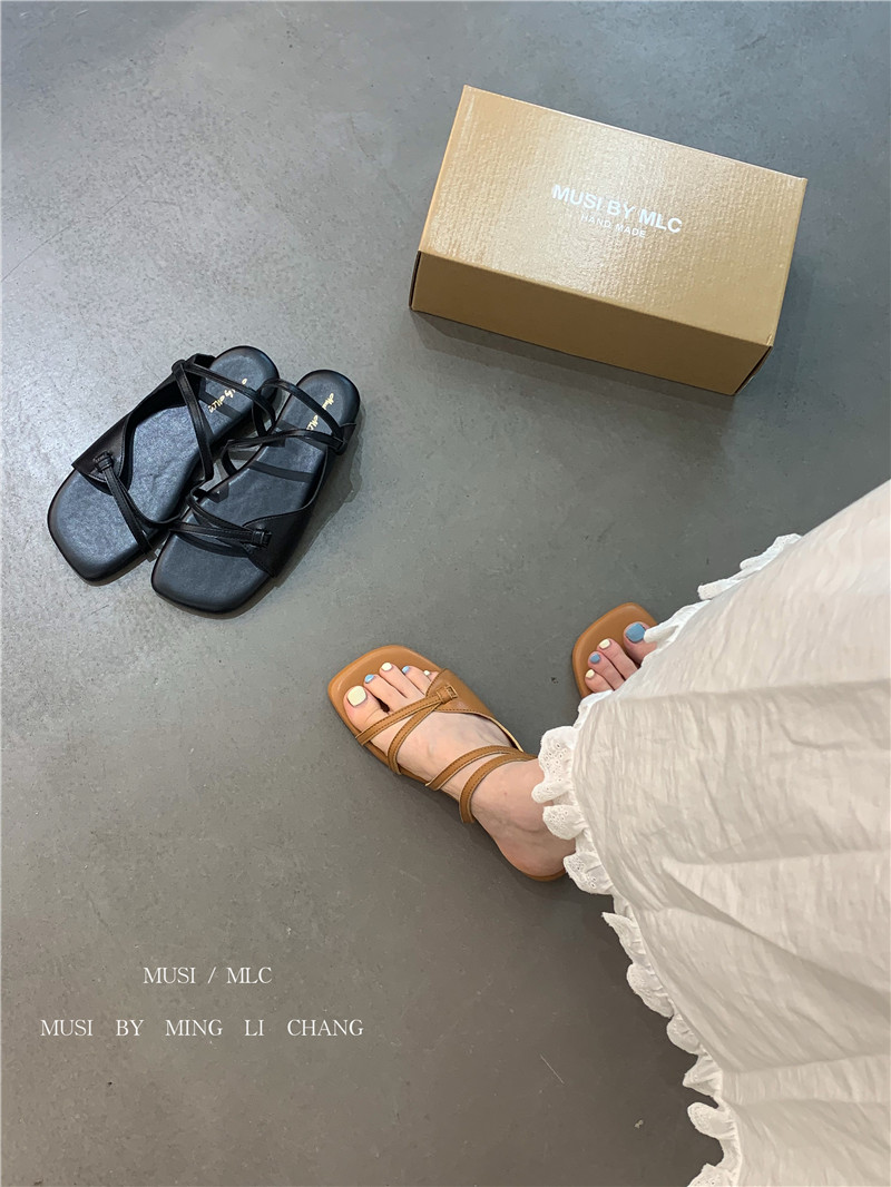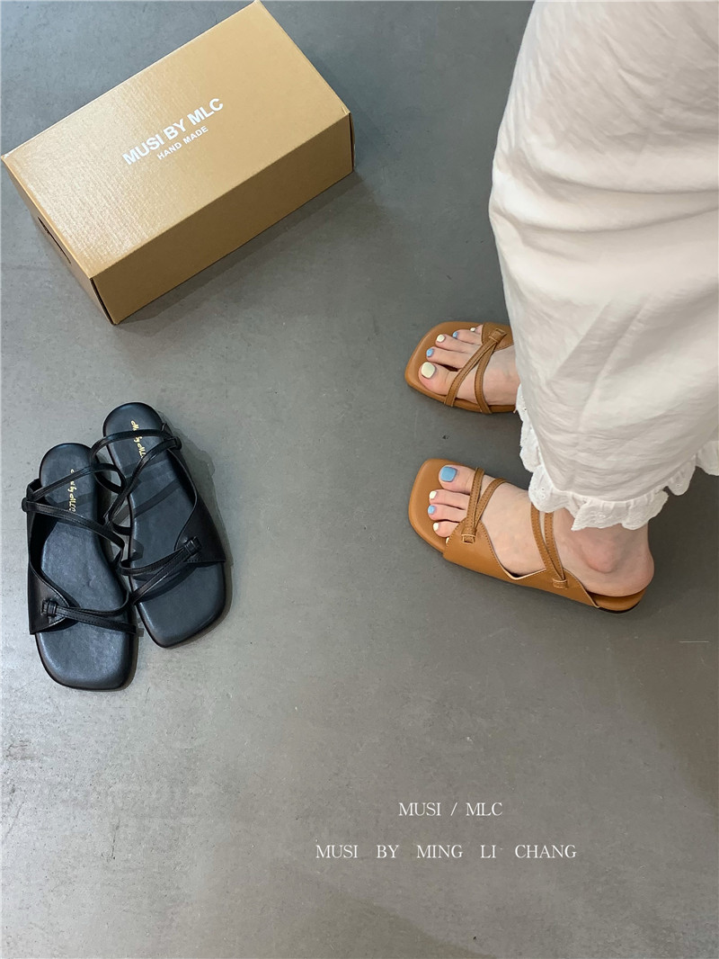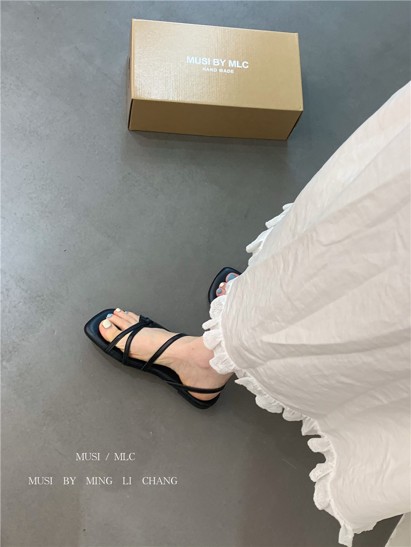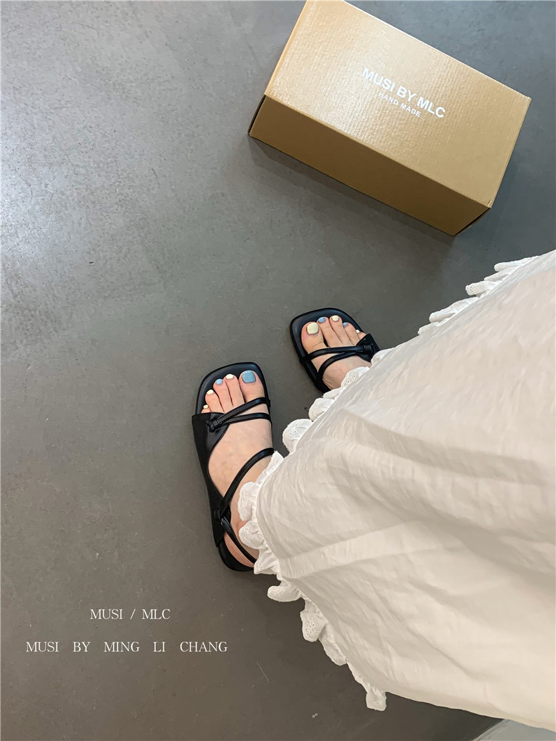 홀리데이 스타일 플랫 오픈 발가락 샌들 여성용 2025 년 여름 새로운 프랑스 스타일 여성 신발 디자인 센스 니쉬 로마 샌들스토어 가기