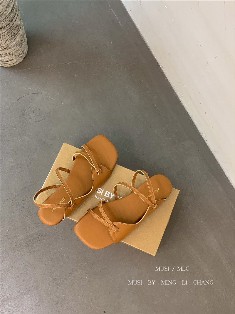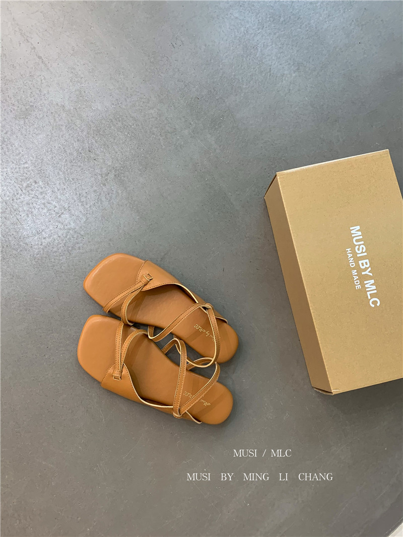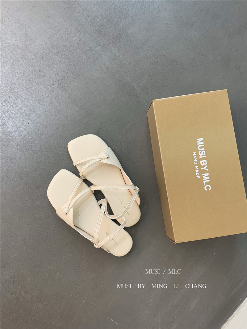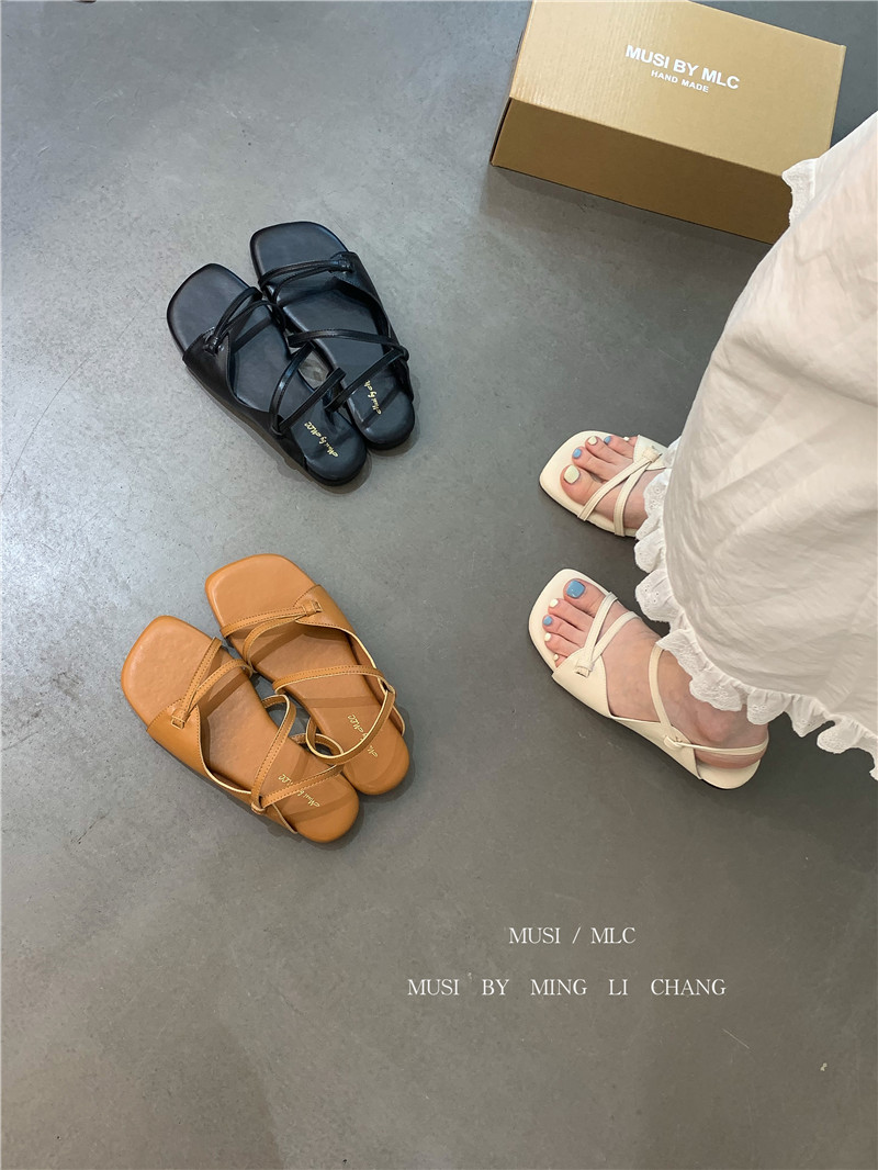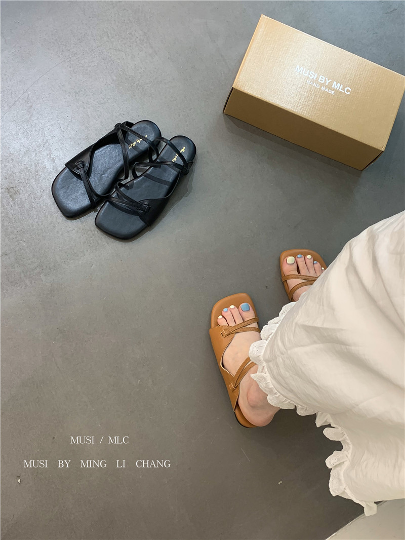 홀리데이 스타일 플랫 오픈 발가락 샌들 여성용 2025 년 여름 새로운 프랑스 스타일 여성 신발 디자인 센스 니쉬 로마 샌들스토어 가기