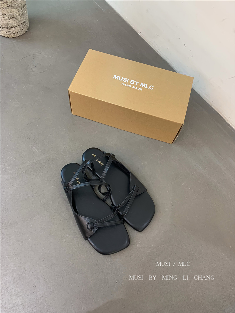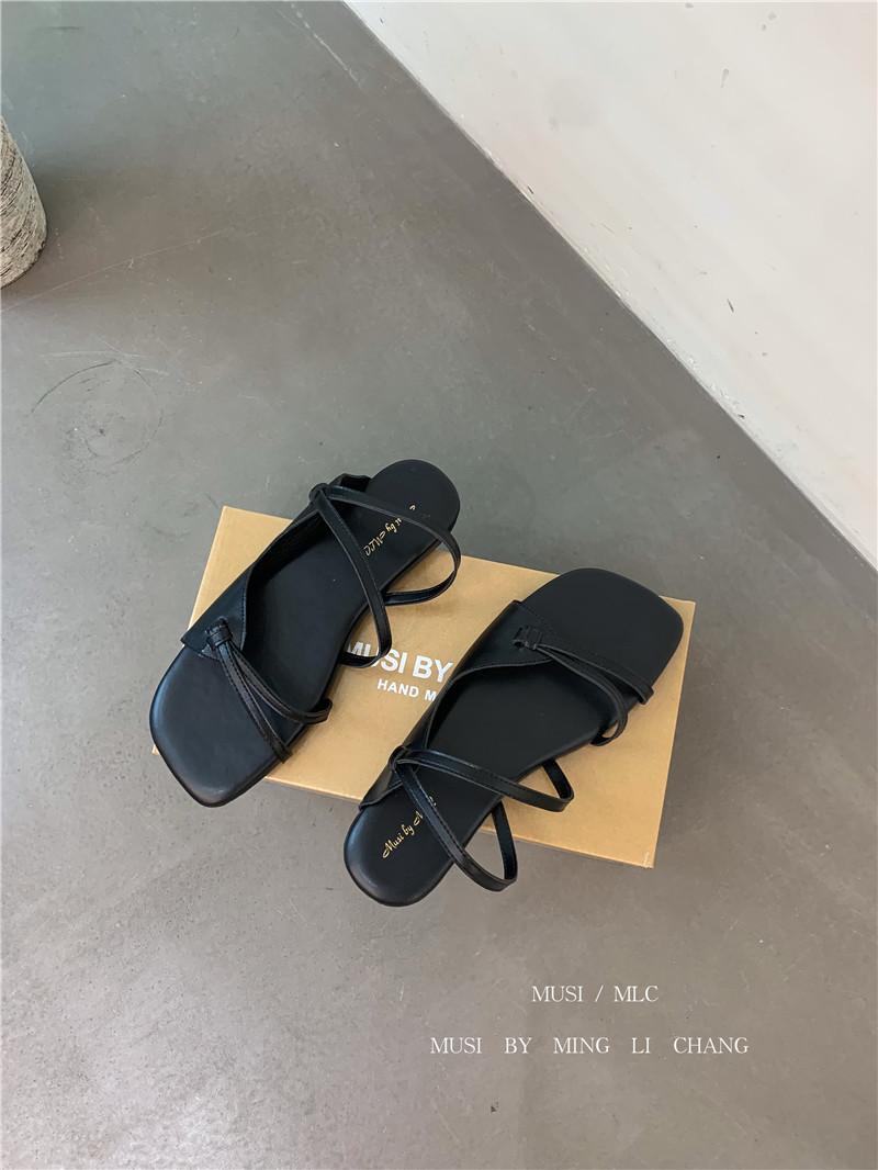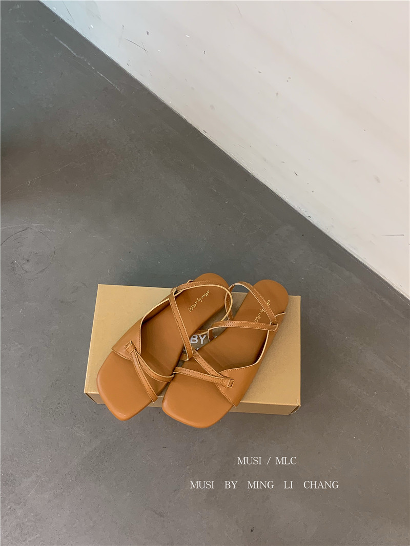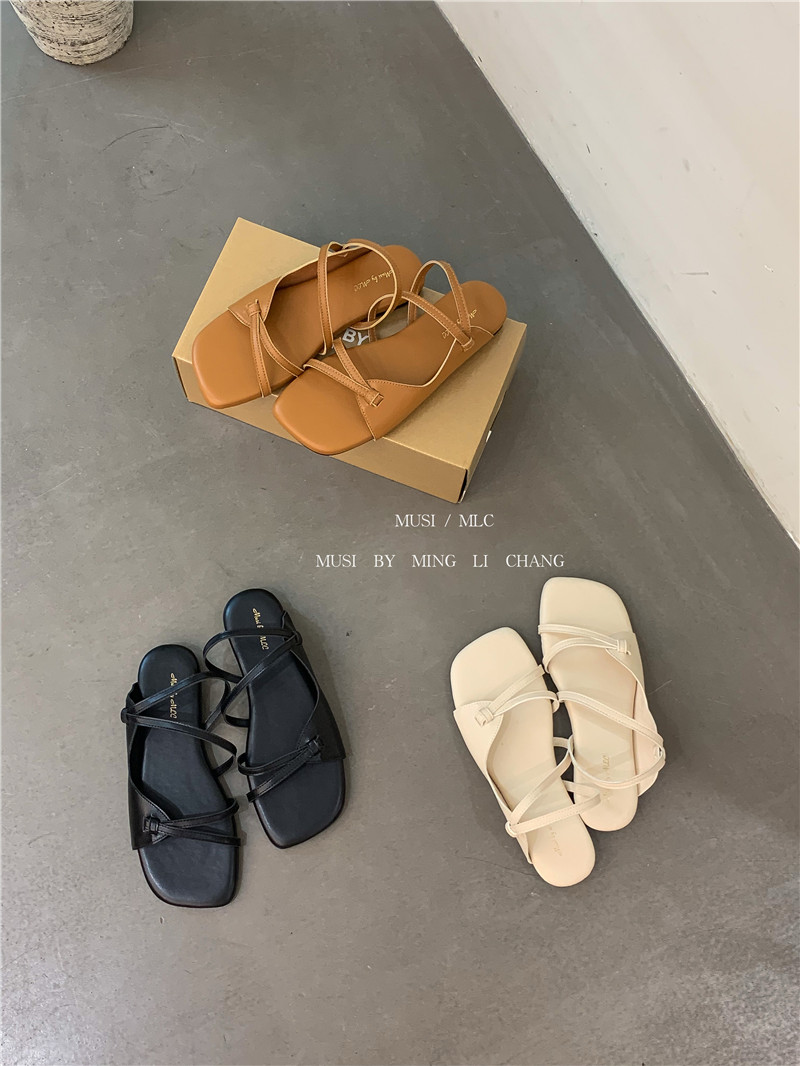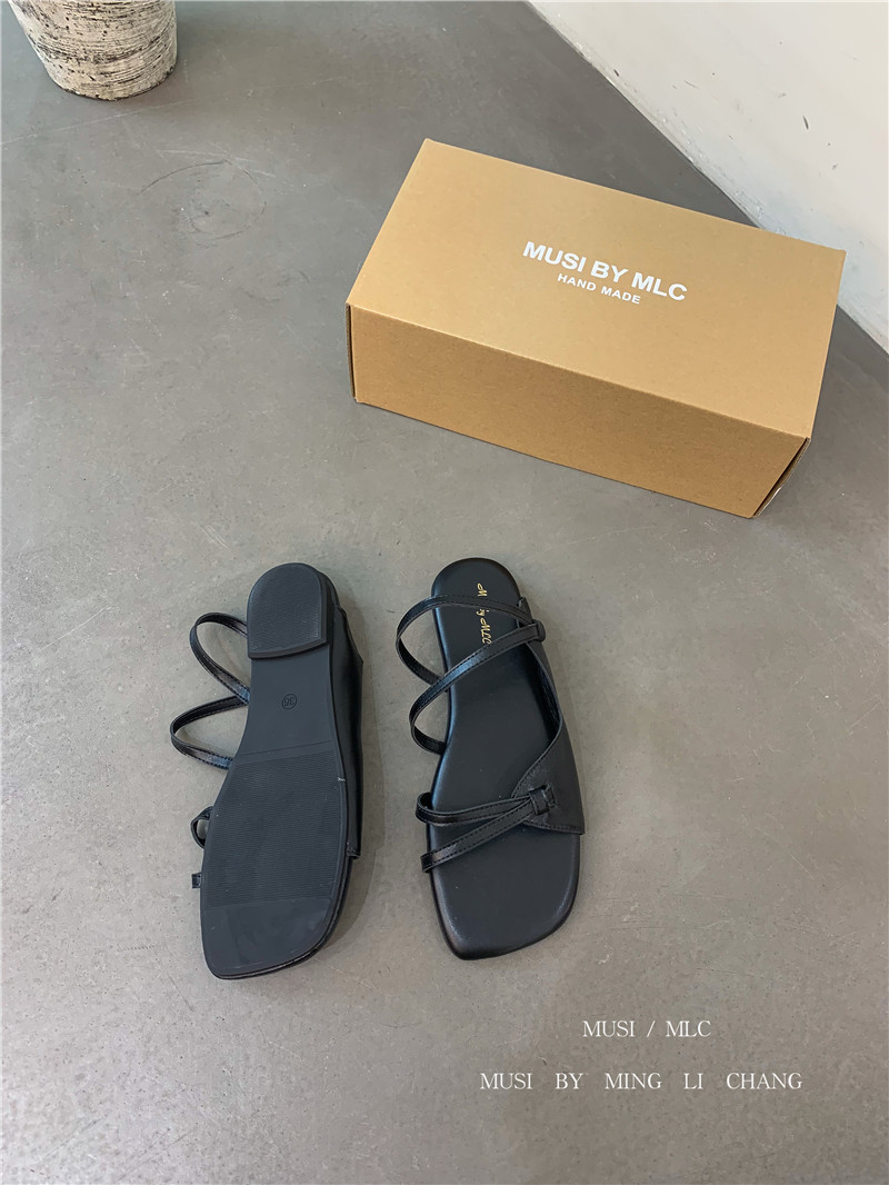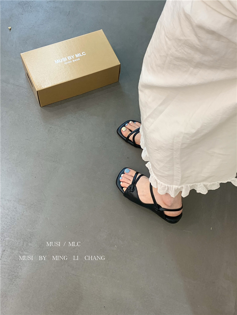 홀리데이 스타일 플랫 오픈 발가락 샌들 여성용 2025 년 여름 새로운 프랑스 스타일 여성 신발 디자인 센스 니쉬 로마 샌들