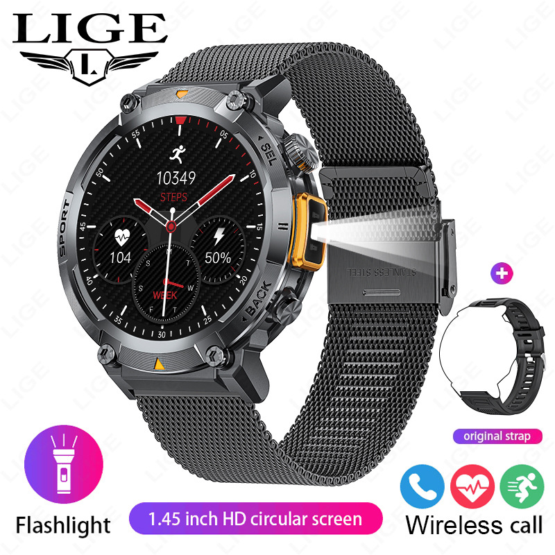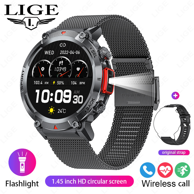 LIGE/크로스보더 LED 손전등 1.45 스크린 블루투스 전화 시계 심박수 혈액 산소 수면 S100