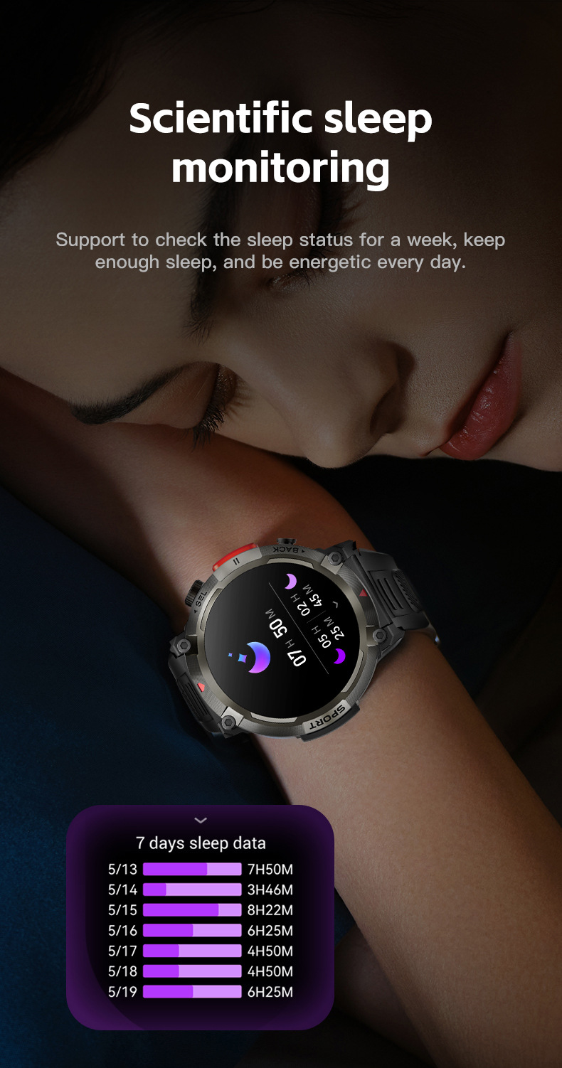 LIGE/크로스보더 LED 손전등 1.45 스크린 블루투스 전화 시계 심박수 혈액 산소 수면 S100스토어 가기