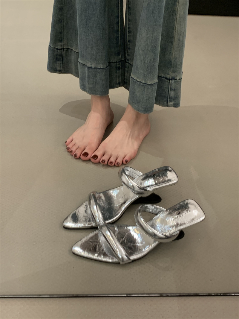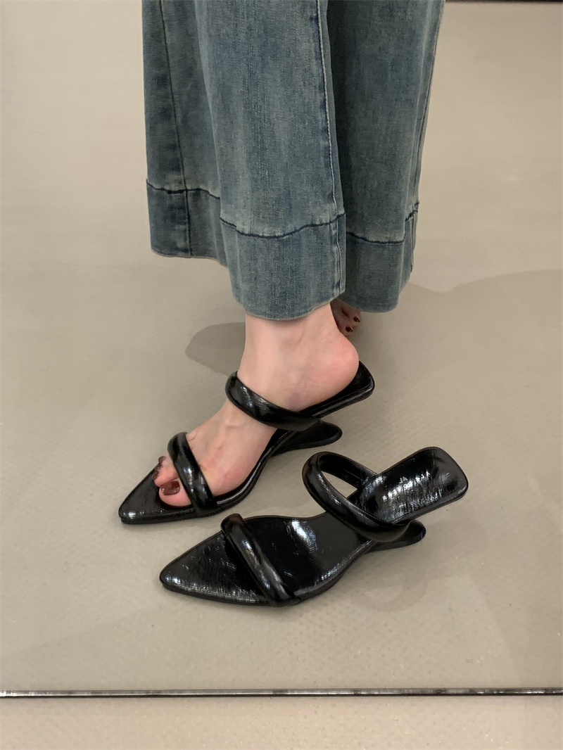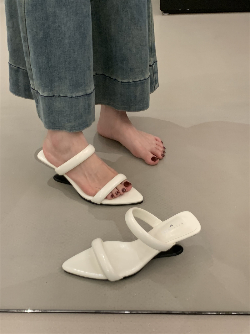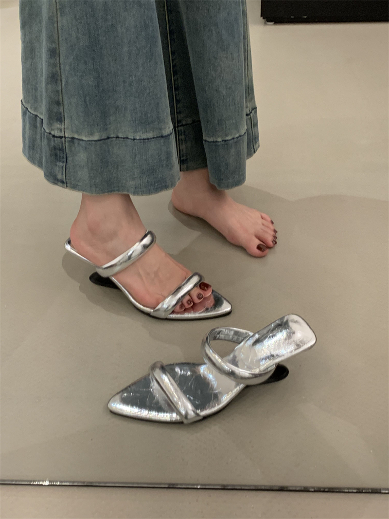2025년 여름 여성을 위한 샌들 새로운 스타일의 하이힐 슬리퍼 틈새 디자인 섹시한 오픈 토우 포인티드 토 아우터 샌들