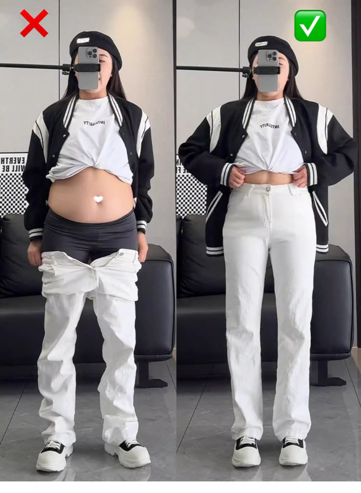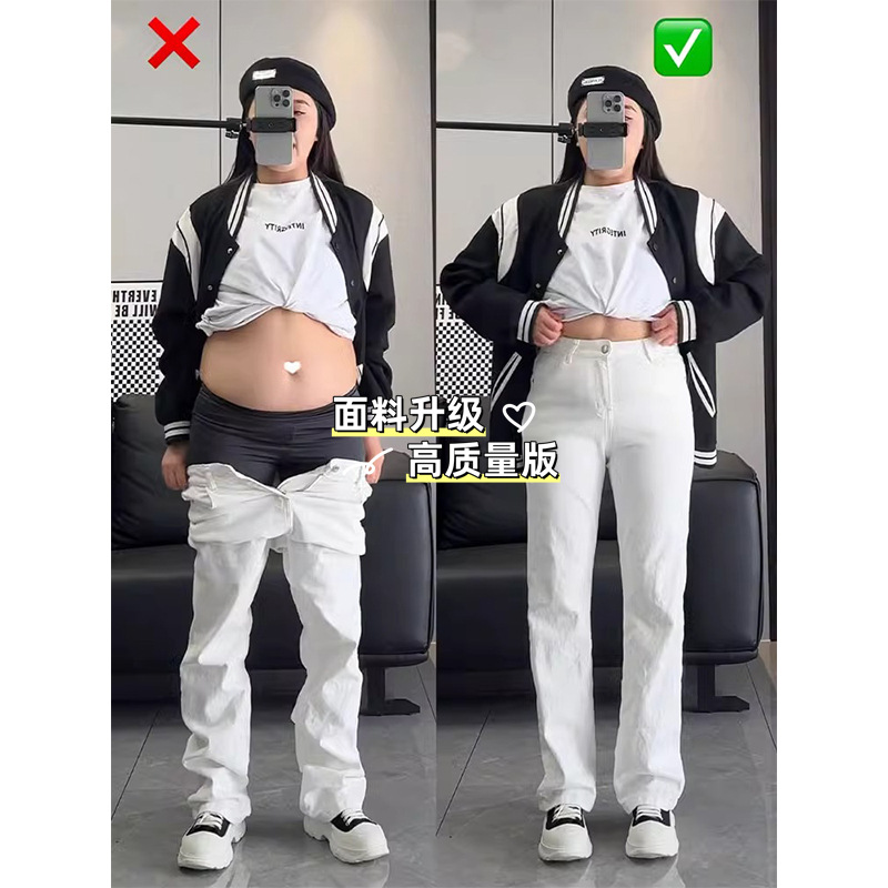 흰색 직선 다리 청바지 여성용 플러스 사이즈 통통녀 가을 높은 허리 엉덩이 뒤덮인 배 모양의 몸 슬리밍 좁은 넓은 다리 바지스토어 가기