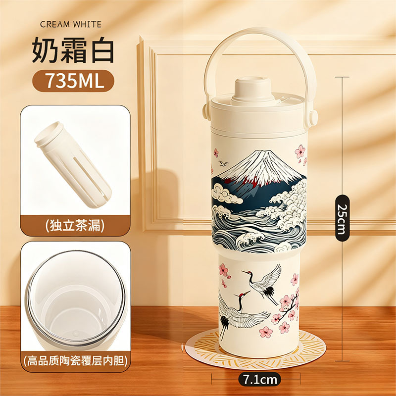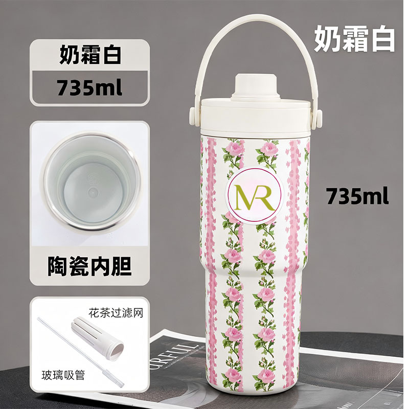 세라믹 내부 커버 유리 빨대 보온컵 차량용 아이스컵 남녀 학생 동남아시아 휴대용 물컵스토어 가기