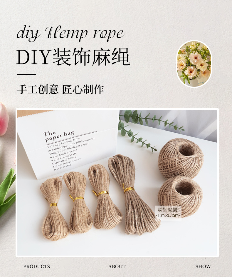 대마 로프 수제 diy 사진 벽 컬러 장식 짠 태그 얇은 두꺼운 장식 대마 로프 메쉬 바인딩 로프 로프스토어 가기