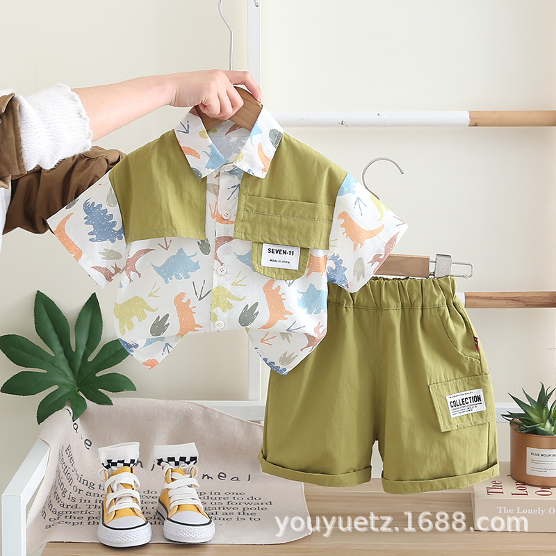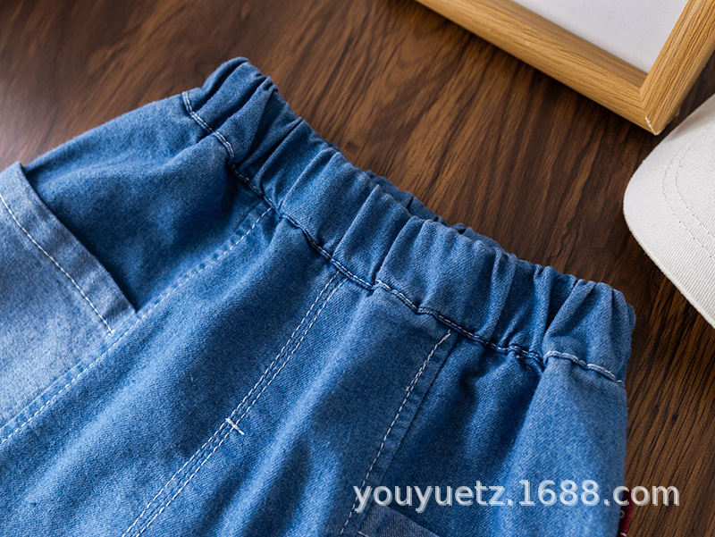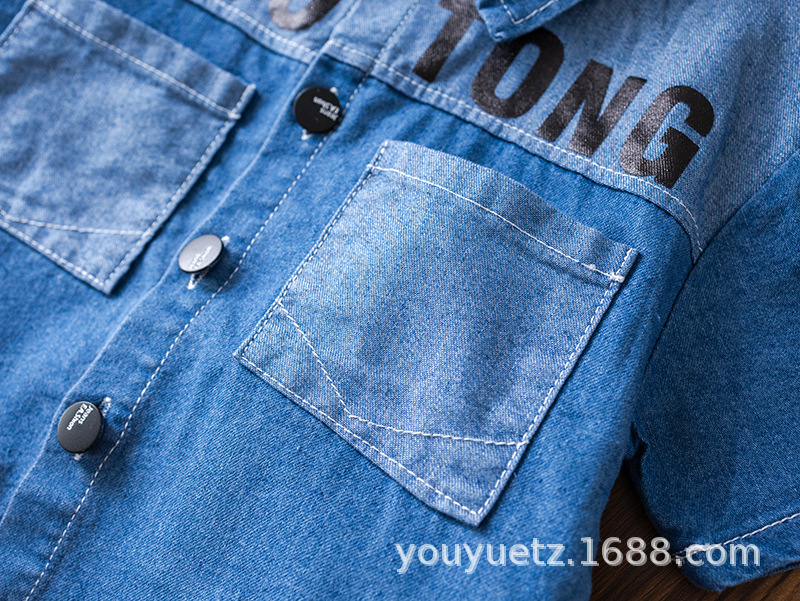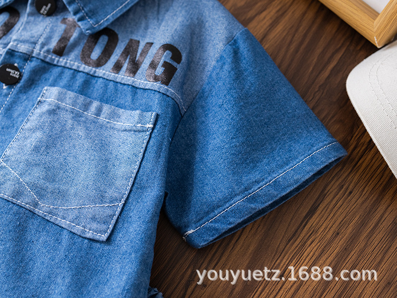 소년 여름 정장 새로운 2025 아기 편지 데님 카디건 반팔 반바지 아동복 여름 겉옷스토어 가기
