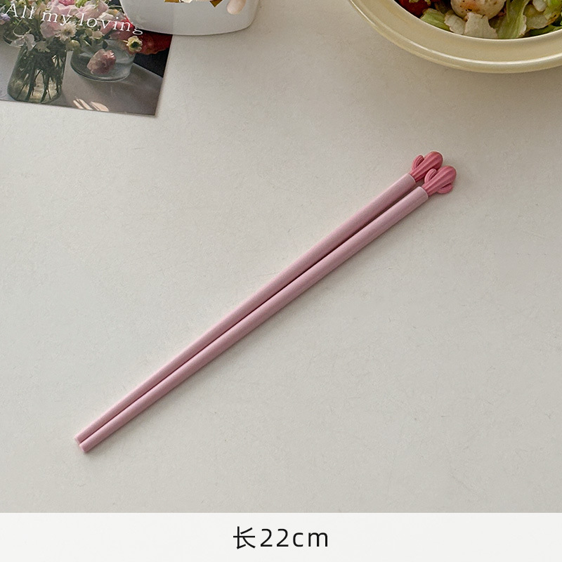 무니 마카롱 색상 선인장 젓가락, 식기세척기 사용 가능, 가정용 합금 젓가락, 귀엽고 고급스럽고 미끄럼 방지 및 고온 방지