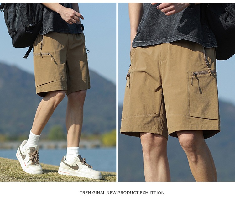 도매 가볍고 얇은 얼음 느낌의 작업복 아메리칸 반바지 여름 유행 브랜드 루즈한 스포츠 바지 멀티 포켓 아이스 실크 휴가 크로스보더스토어 가기