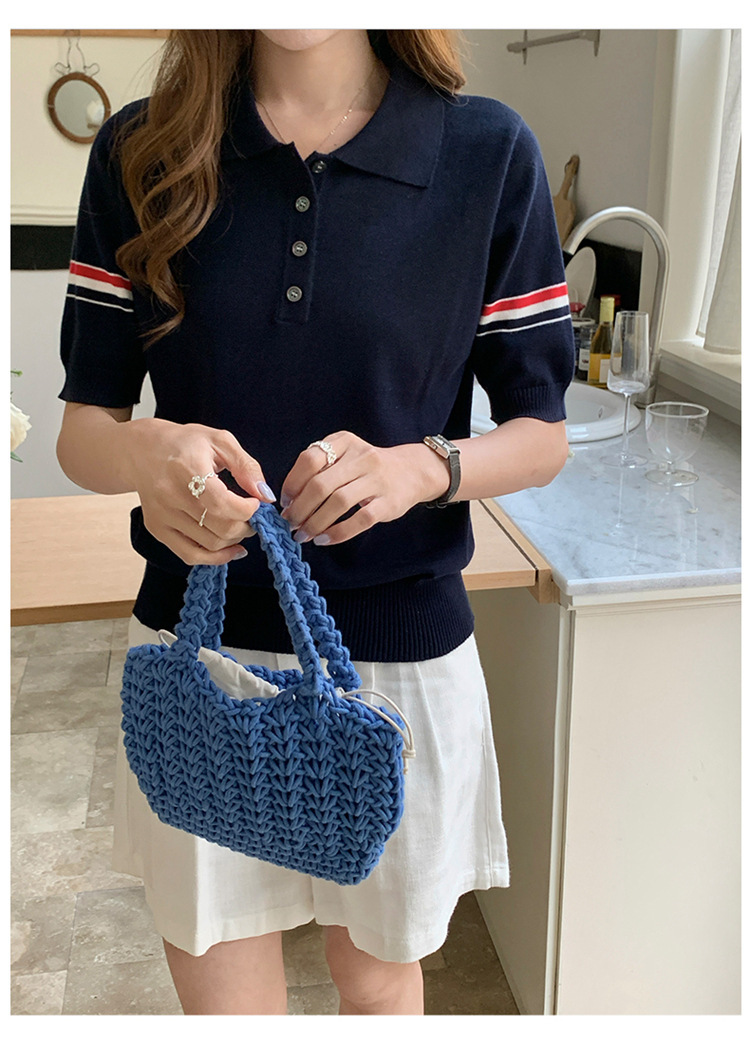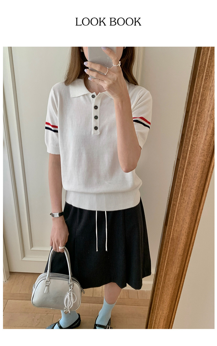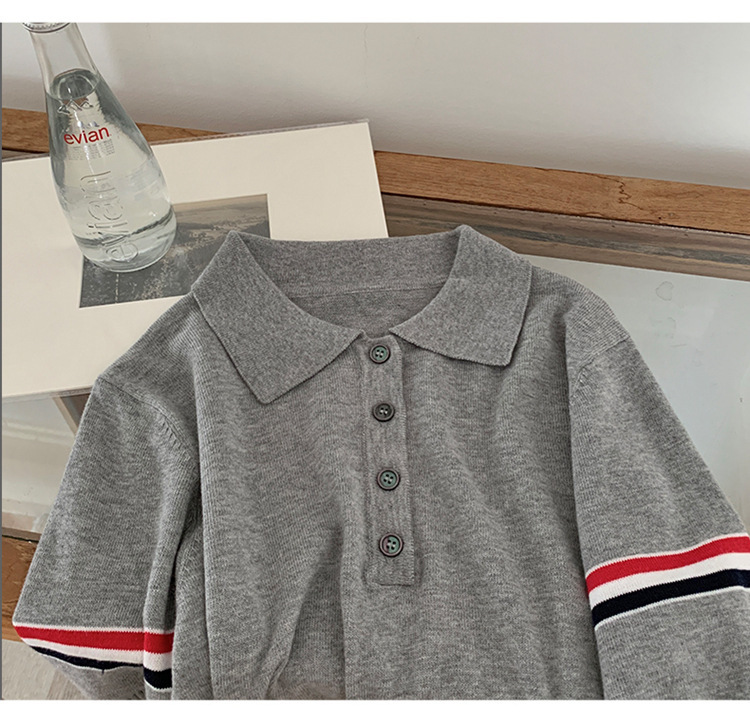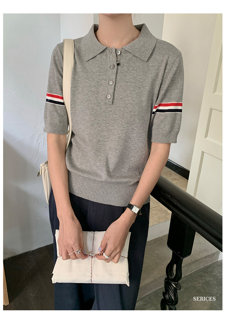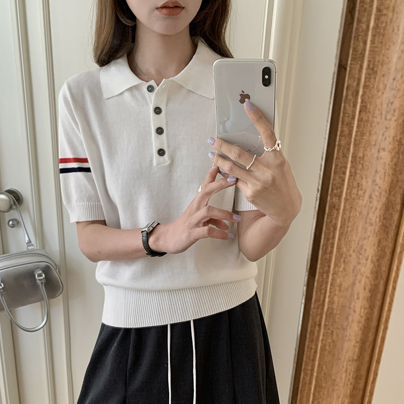 여름 새로운 스타일 옷깃 니트 반팔 폴로 셔츠 니트 더블 슬리브 컬러 스트립 반팔 남성과 여성의 같은 스타일 폴로 셔츠 도매스토어 가기