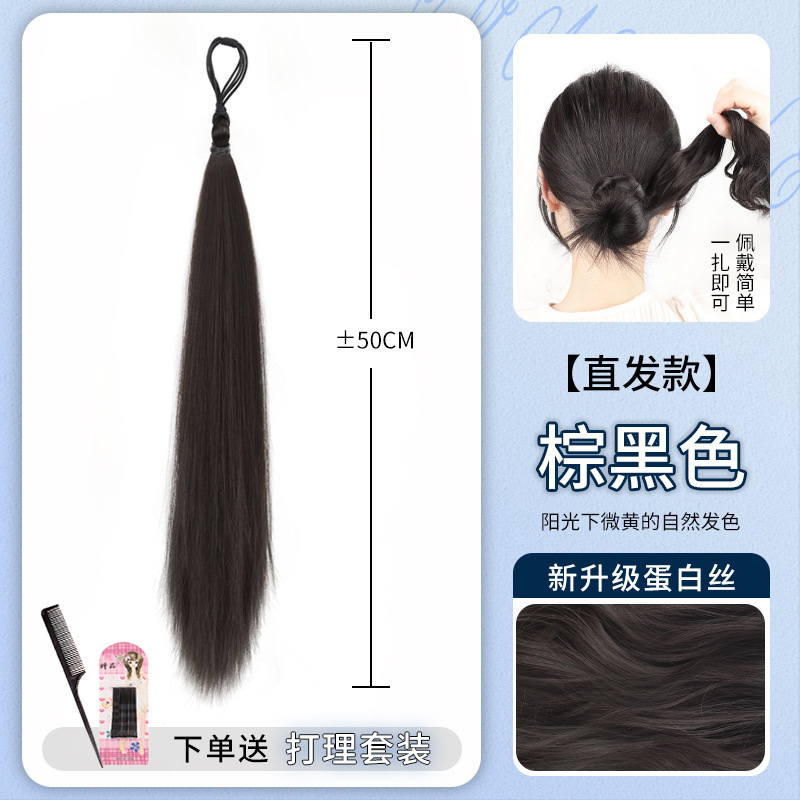 • 직모용 셀프랩볼 헤어번들 [브라운블랙 50cm]