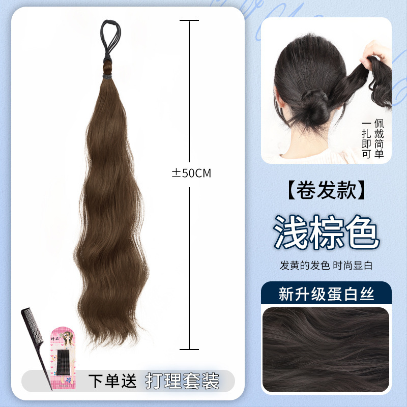 • 곱슬머리용 셀프랩볼 헤어번들 [라이트브라운 50cm]