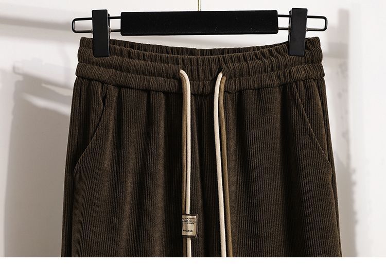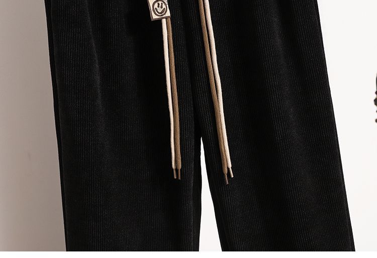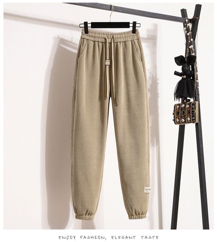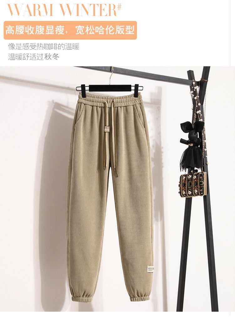 2024 가을과 겨울 새로운 여자 캐주얼 올매치 높은 허리 긴 바지 기모 느슨한 슬리밍 여자 두꺼운 바지스토어 가기