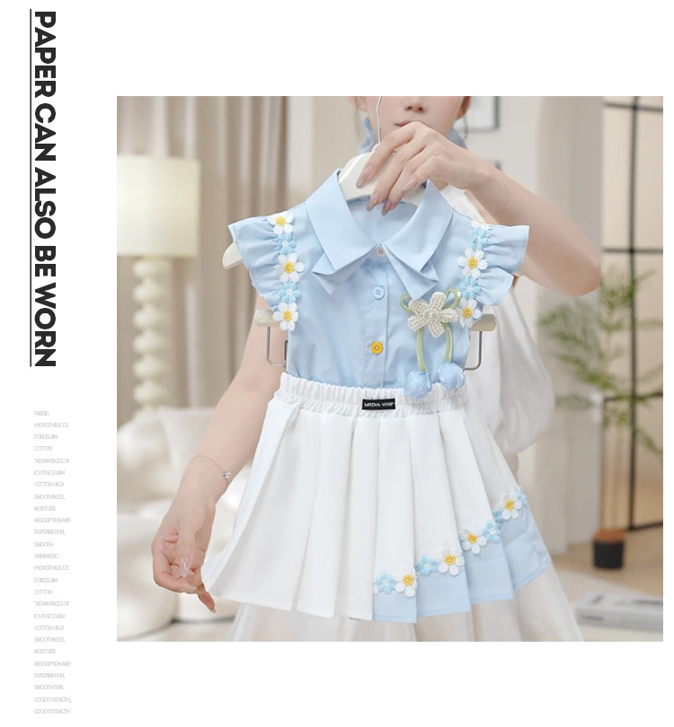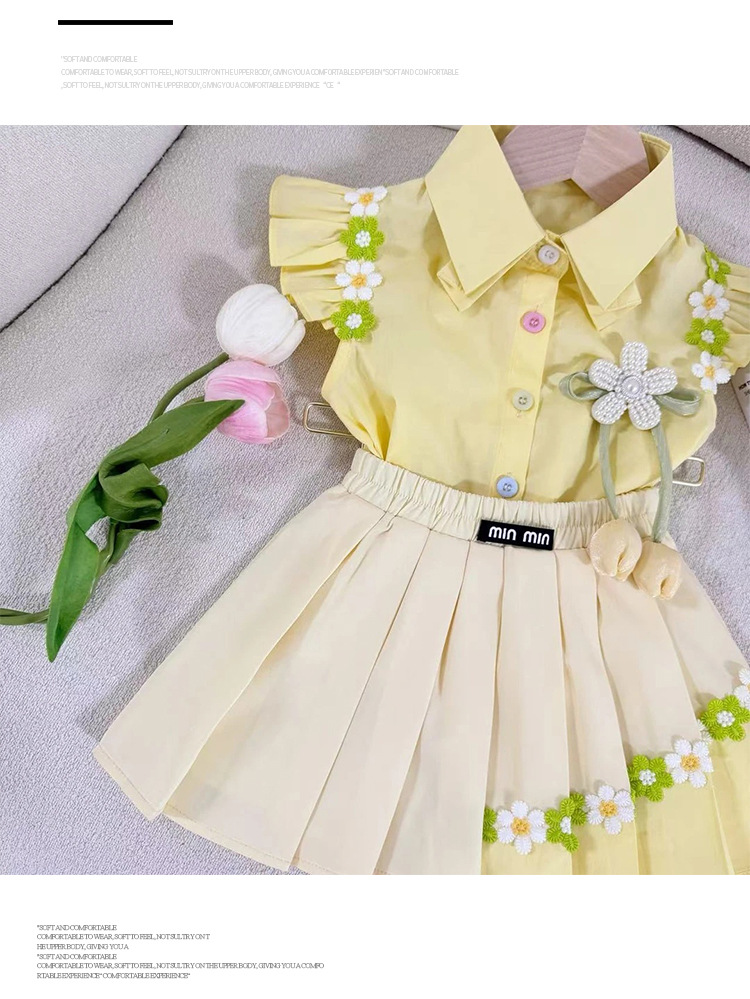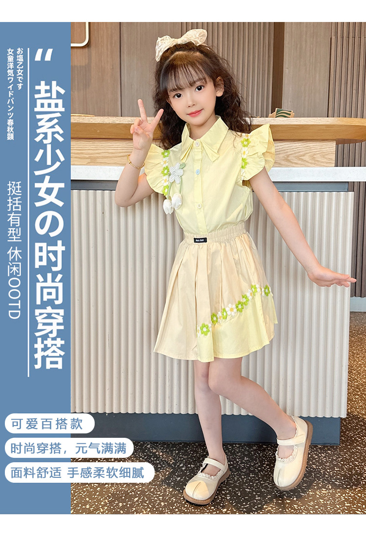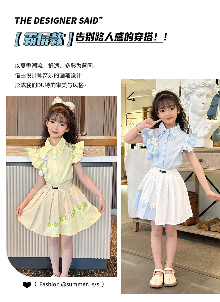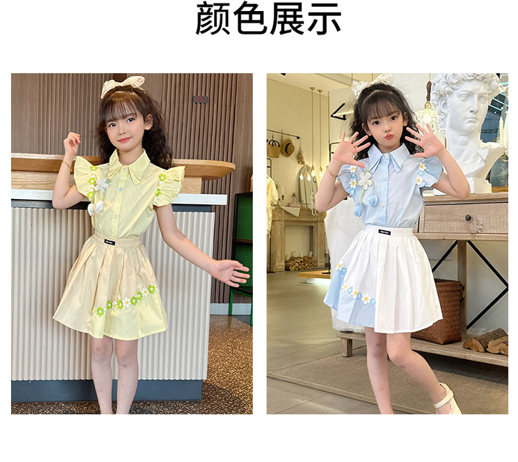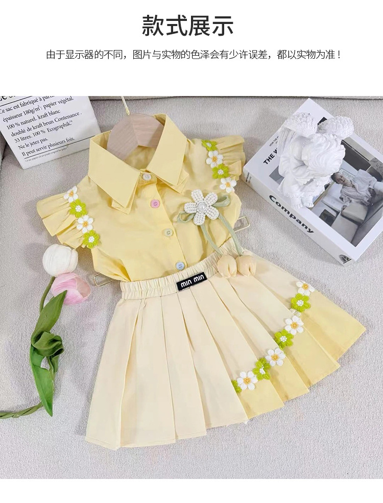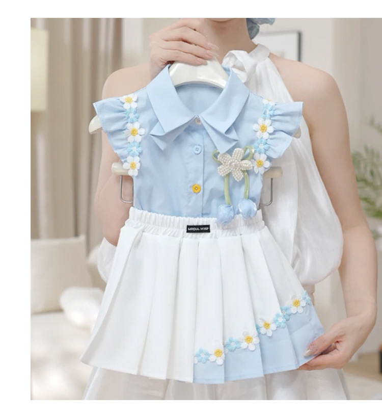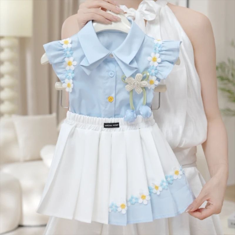 여자 여름 세트 2025 새로운 어린이 반팔 티셔츠 세련된 유행 아기 캐주얼 셔츠 주름 치마스토어 가기