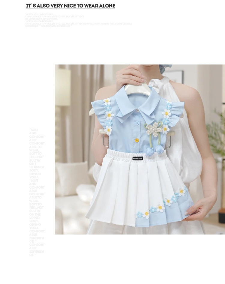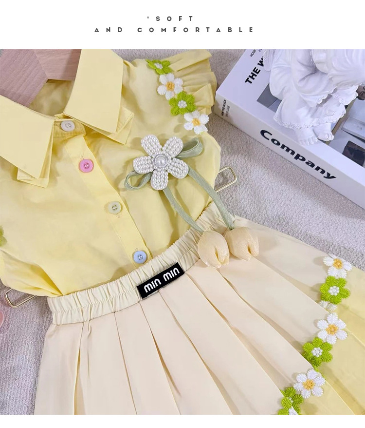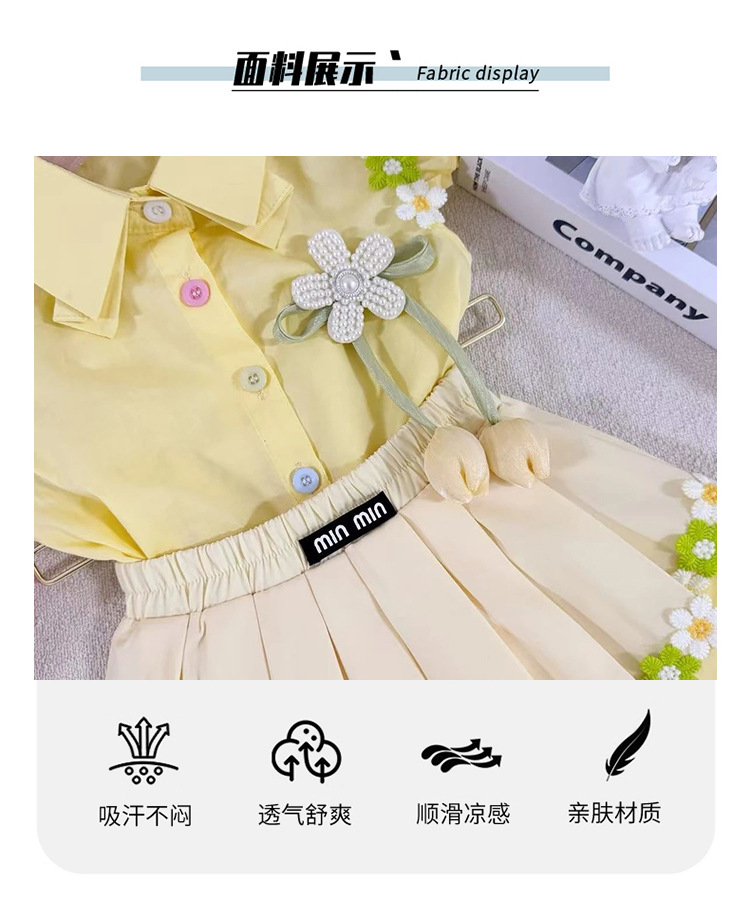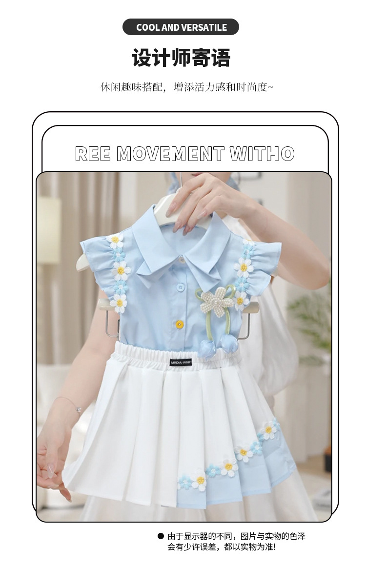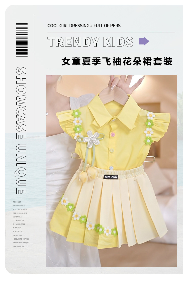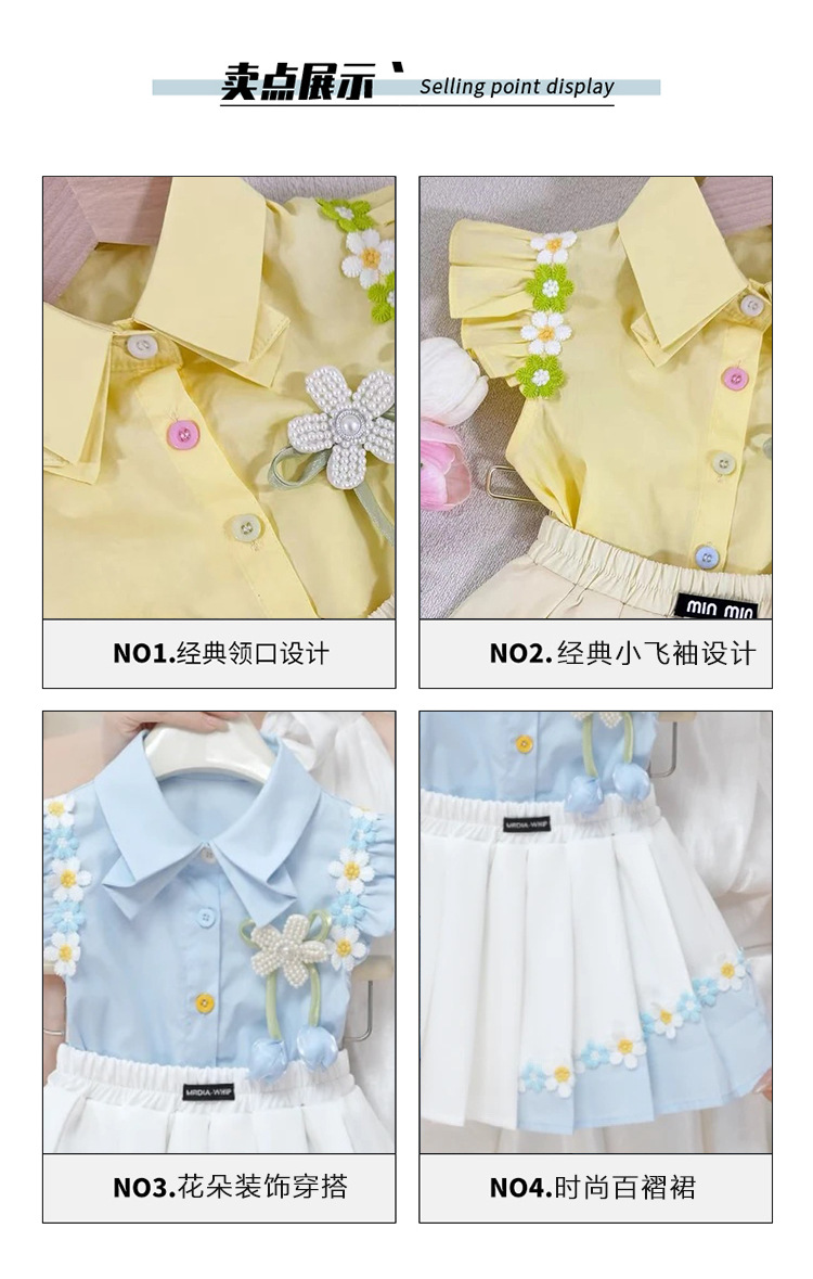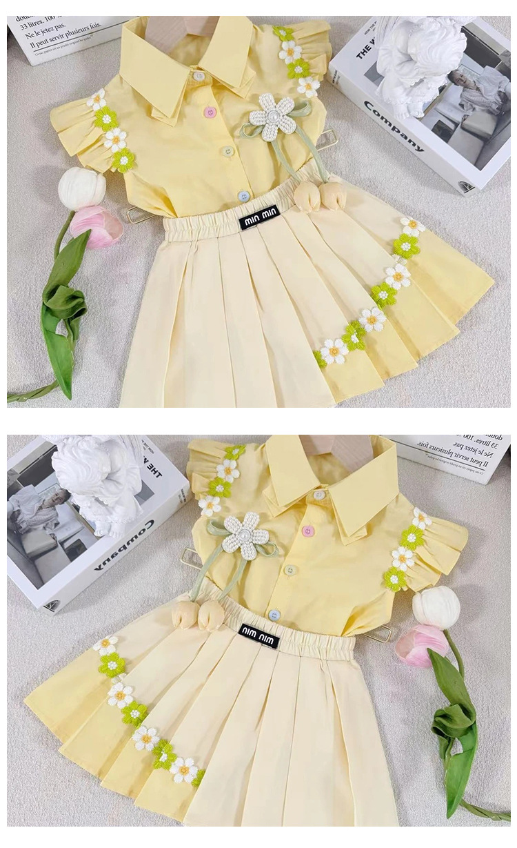 여자 여름 세트 2025 새로운 어린이 반팔 티셔츠 세련된 유행 아기 캐주얼 셔츠 주름 치마스토어 가기