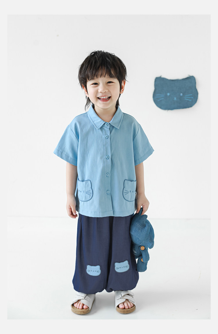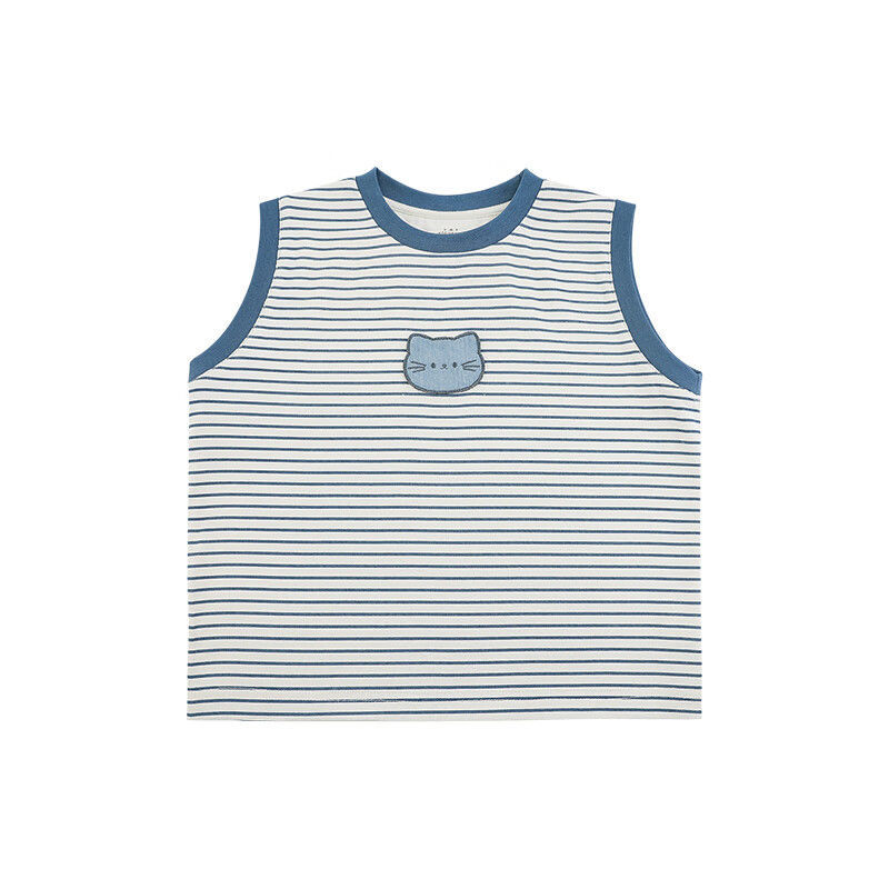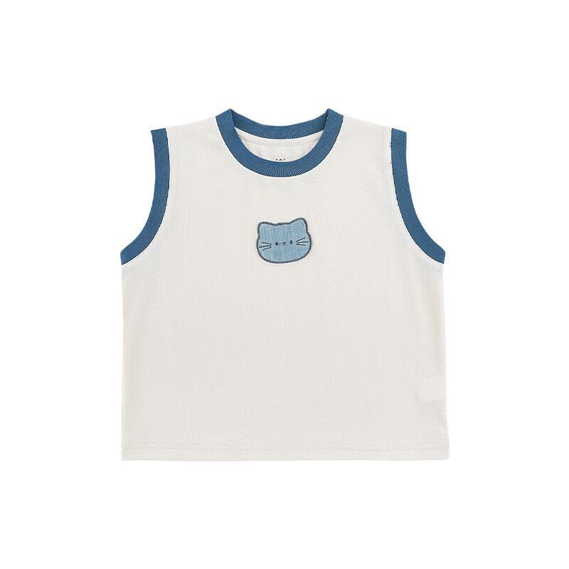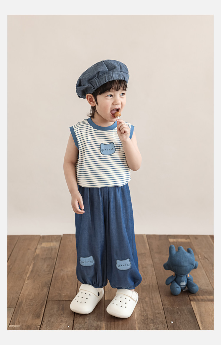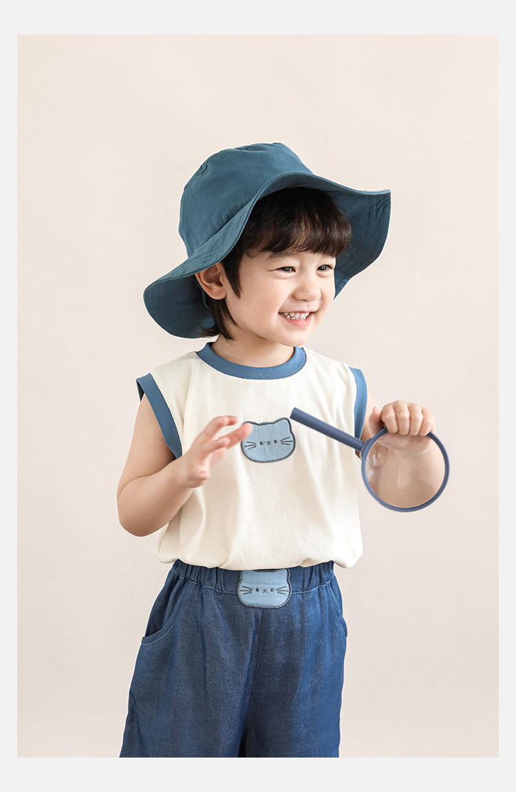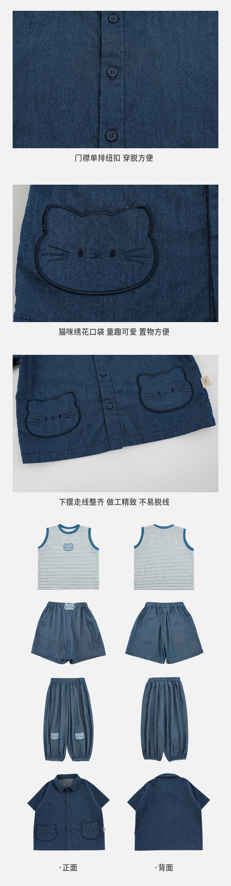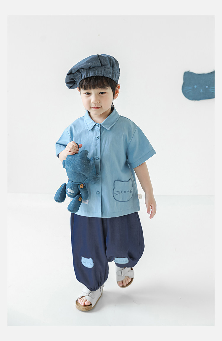 Wurib 소년 여름 새로운 폴로 옷깃 셔츠 민소매 조끼 느슨한 반바지 고양이 시리즈 세트스토어 가기