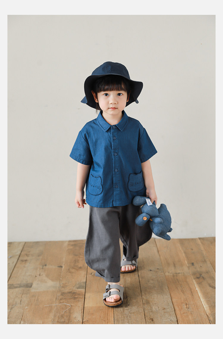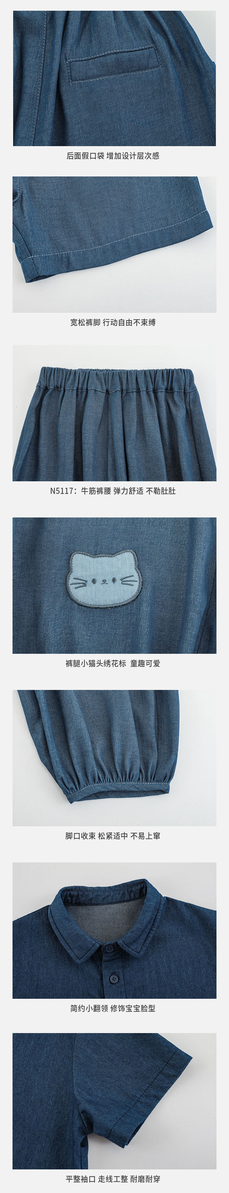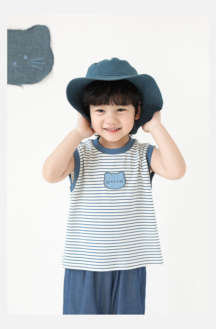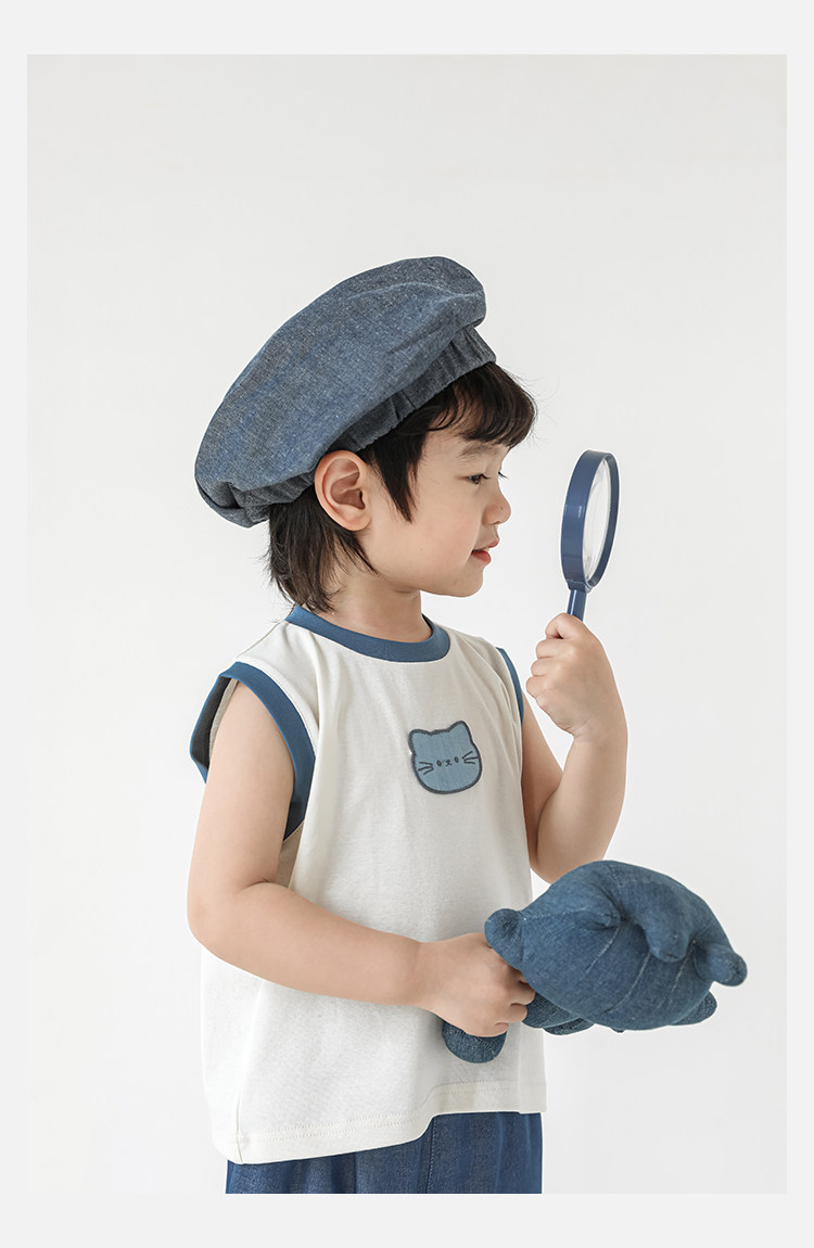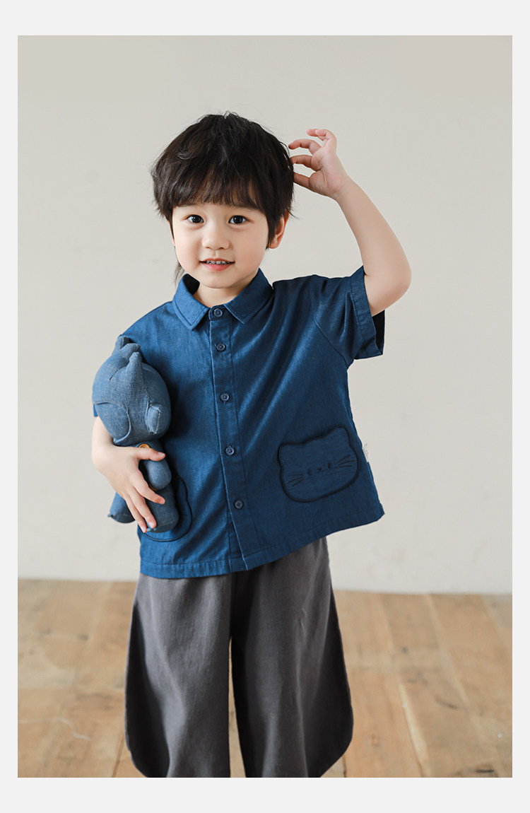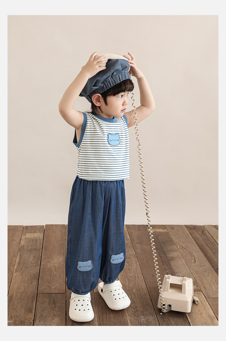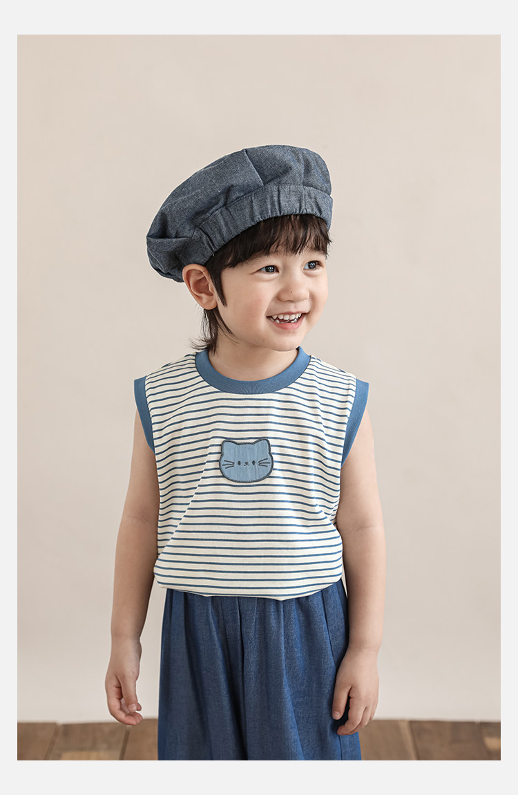 Wurib 소년 여름 새로운 폴로 옷깃 셔츠 민소매 조끼 느슨한 반바지 고양이 시리즈 세트스토어 가기