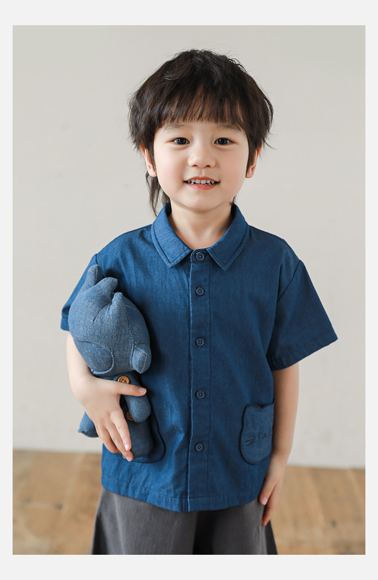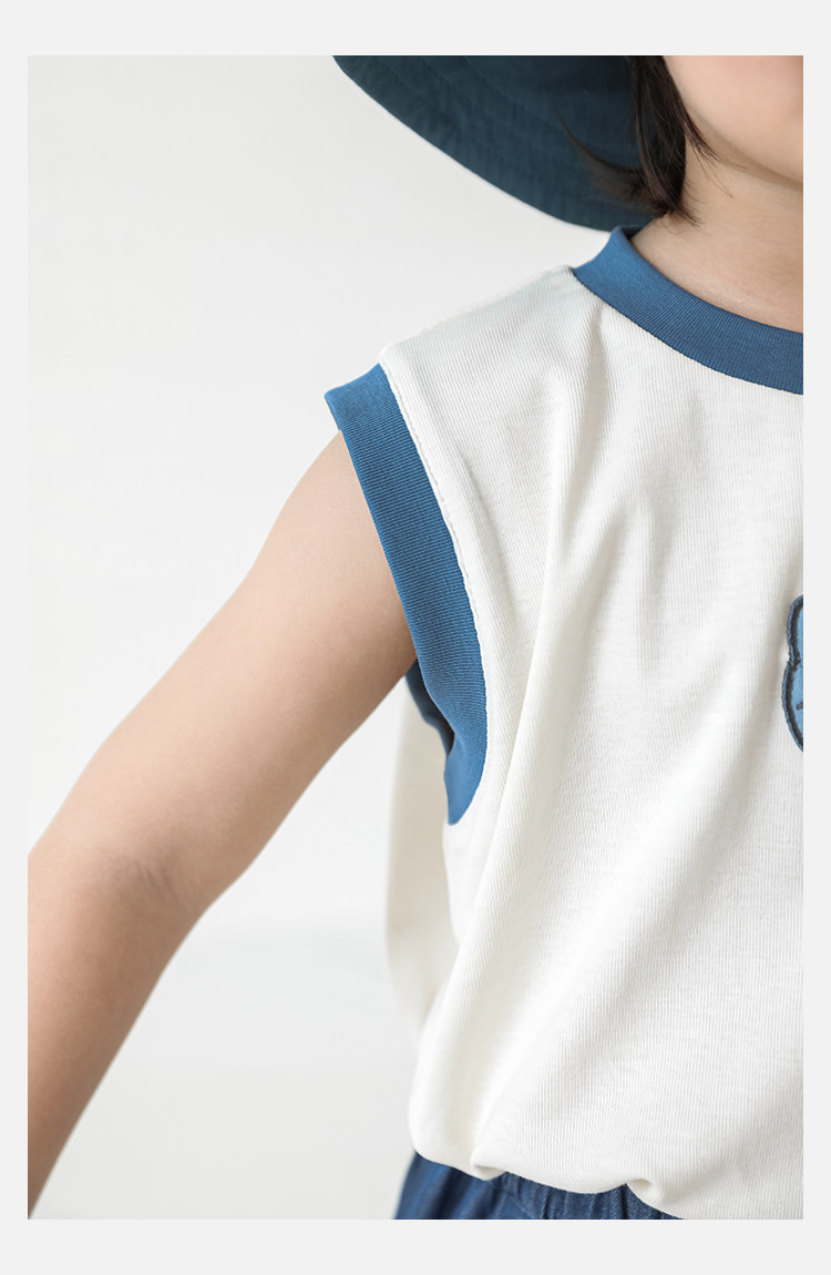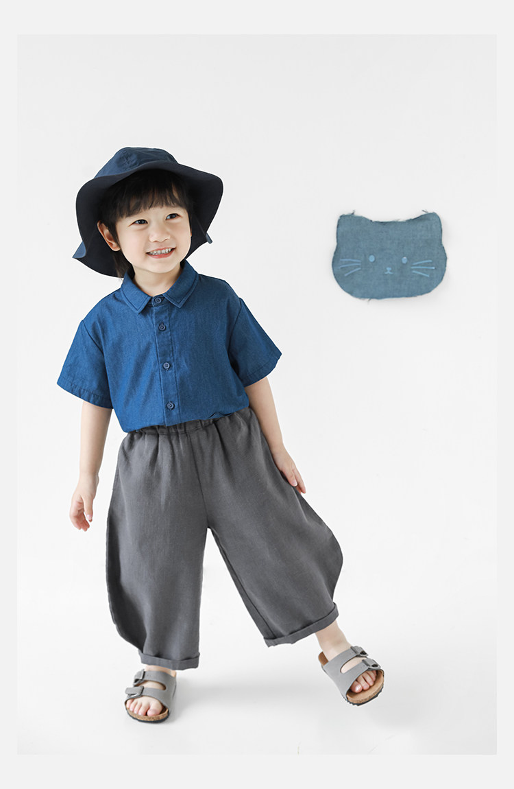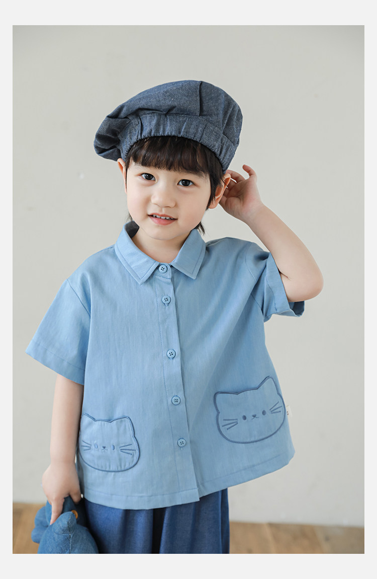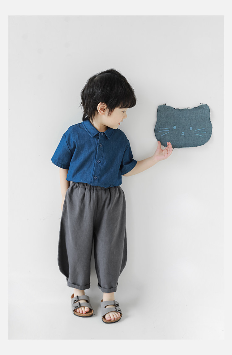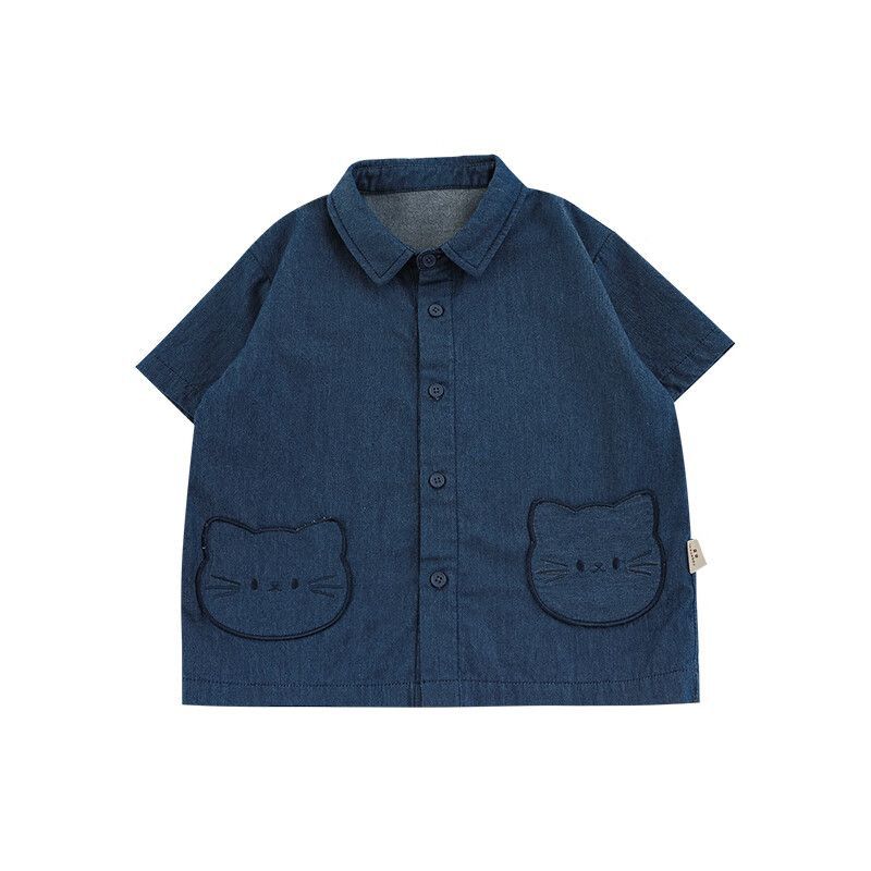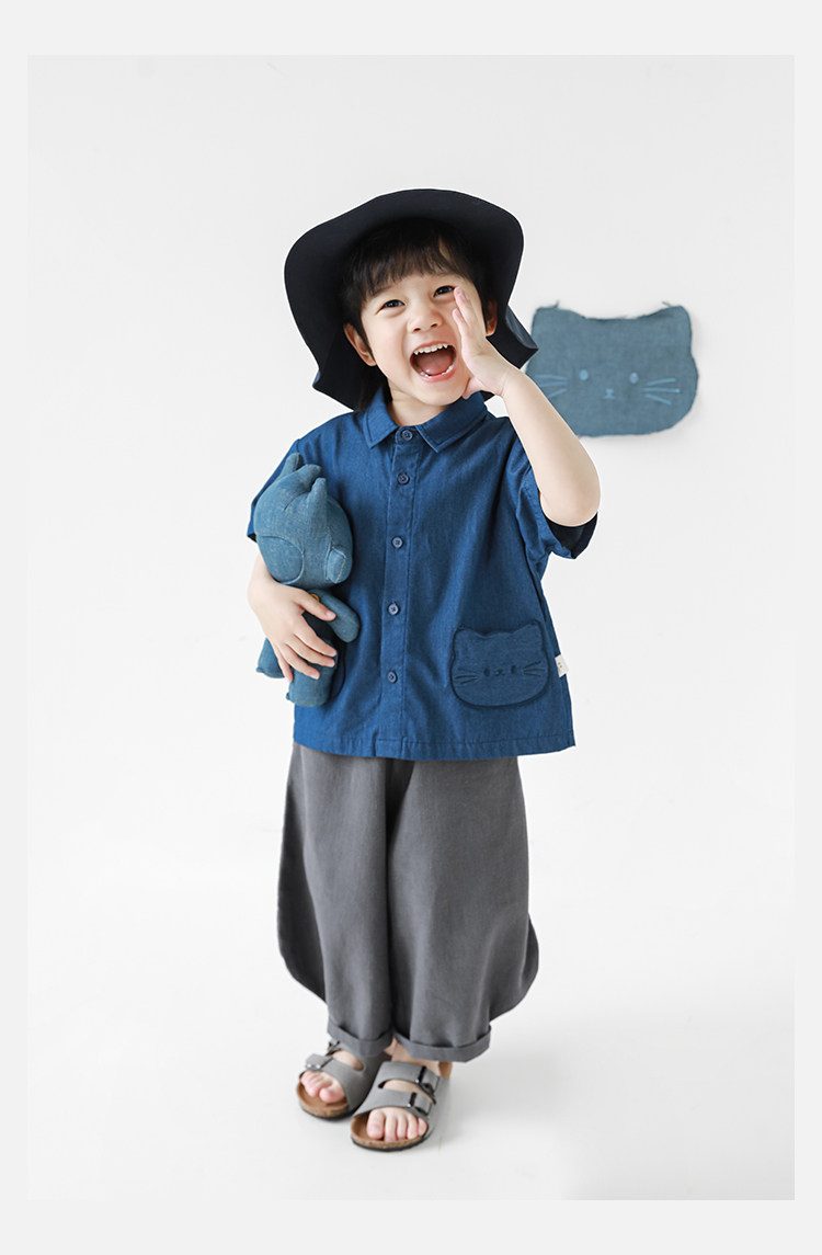 Wurib 소년 여름 새로운 폴로 옷깃 셔츠 민소매 조끼 느슨한 반바지 고양이 시리즈 세트스토어 가기