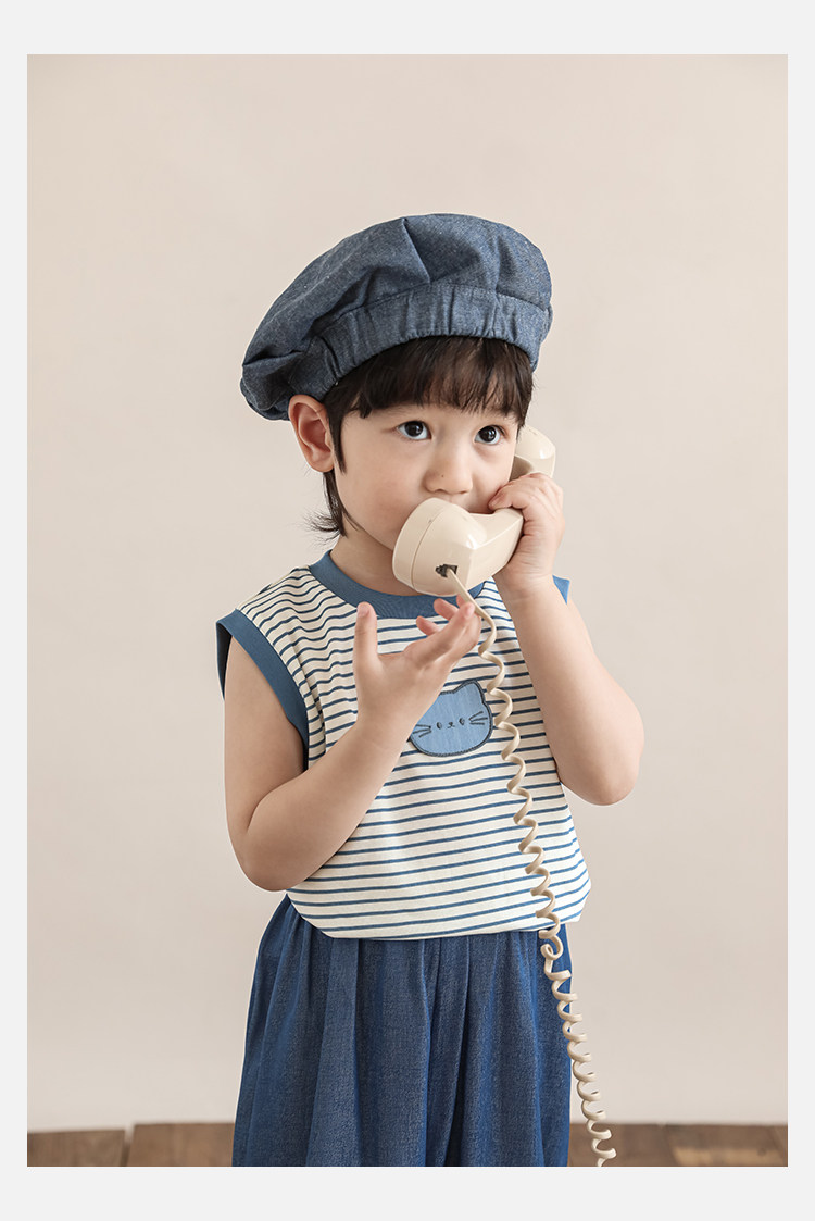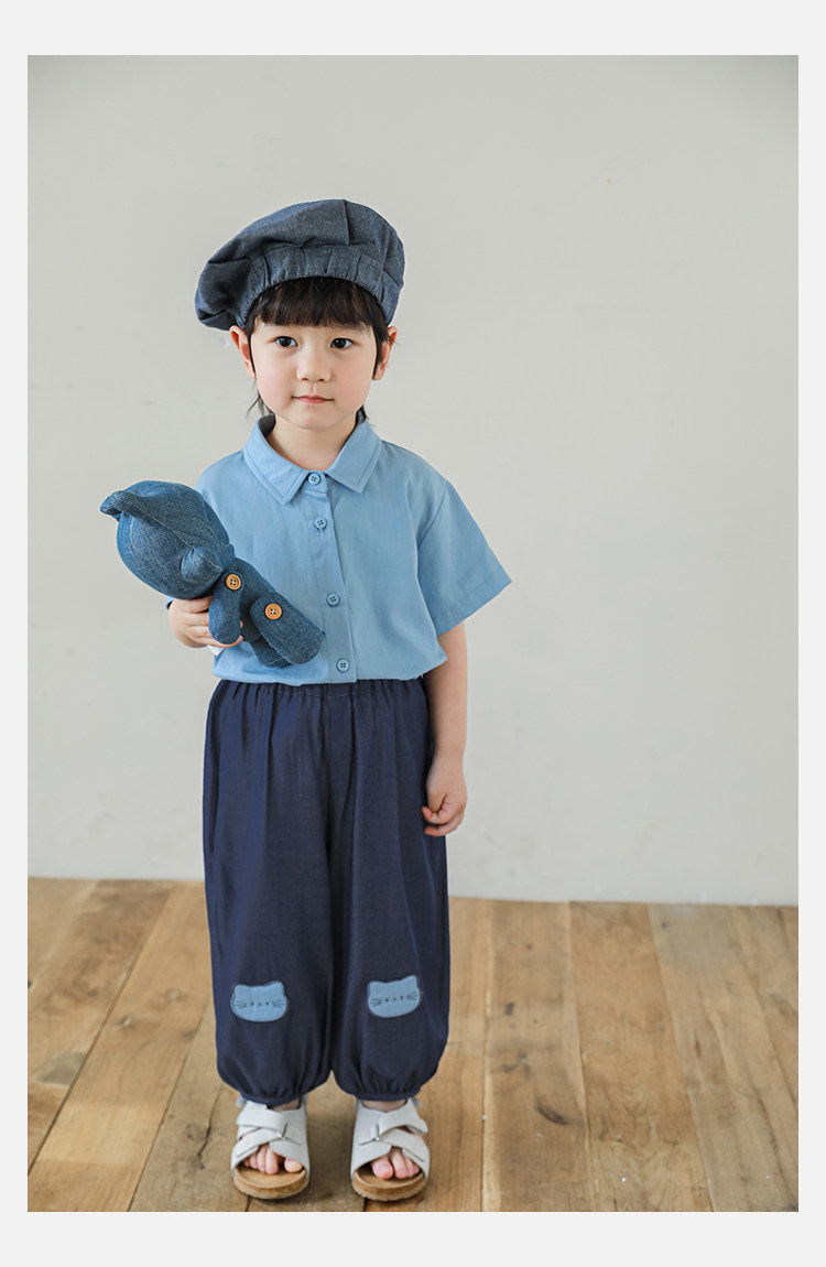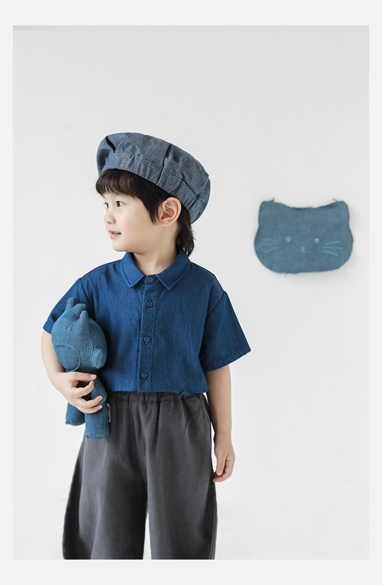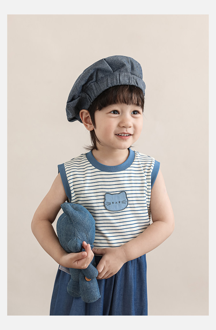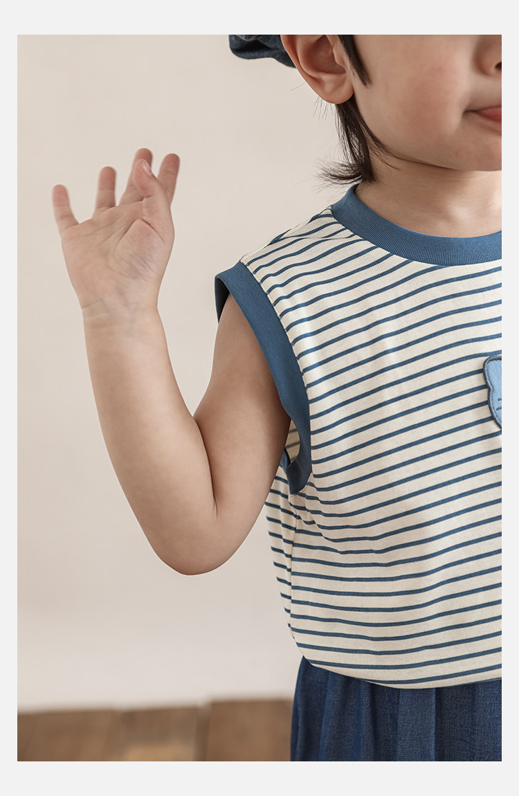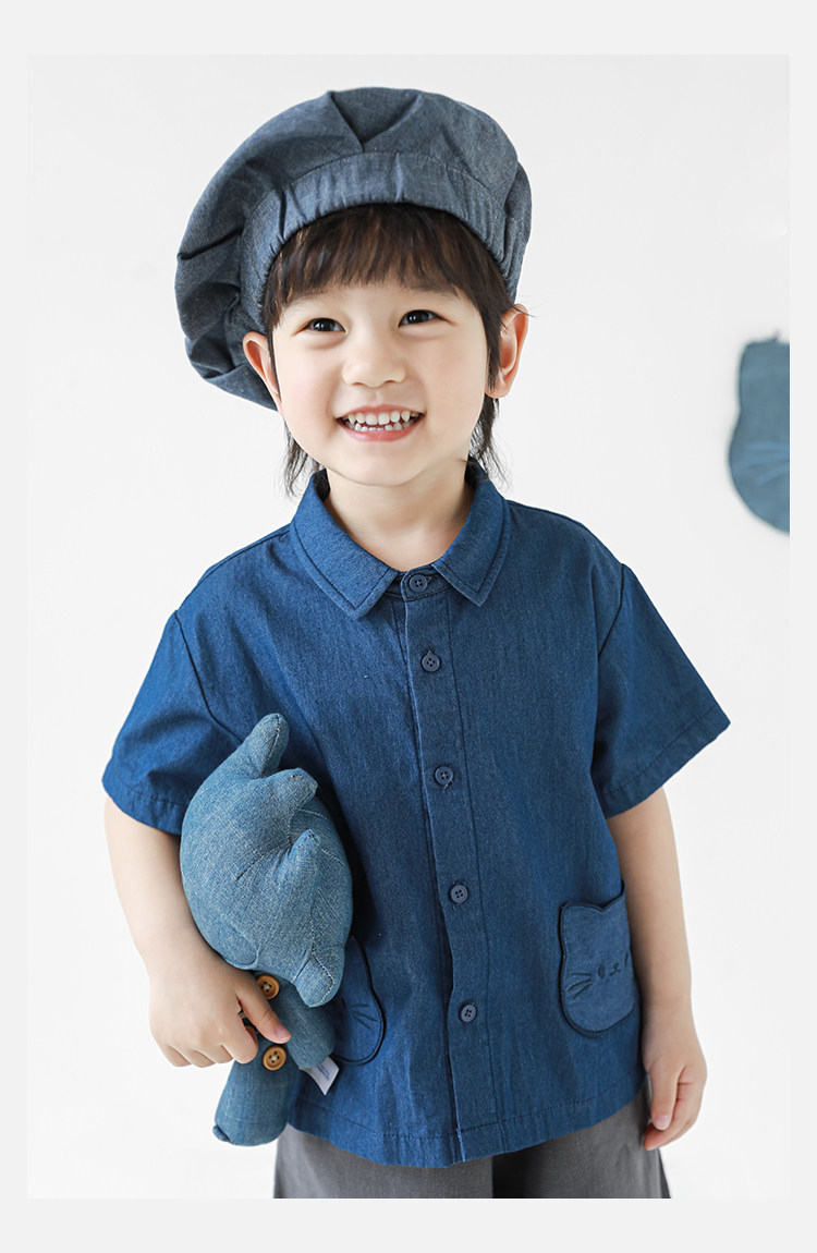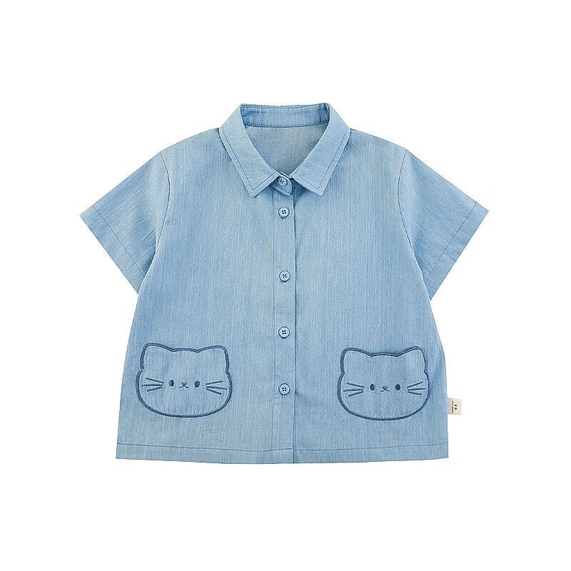 Wurib 소년 여름 새로운 폴로 옷깃 셔츠 민소매 조끼 느슨한 반바지 고양이 시리즈 세트스토어 가기