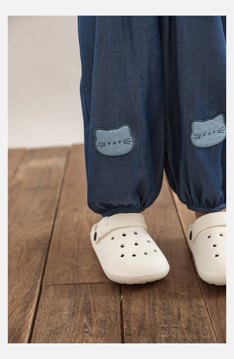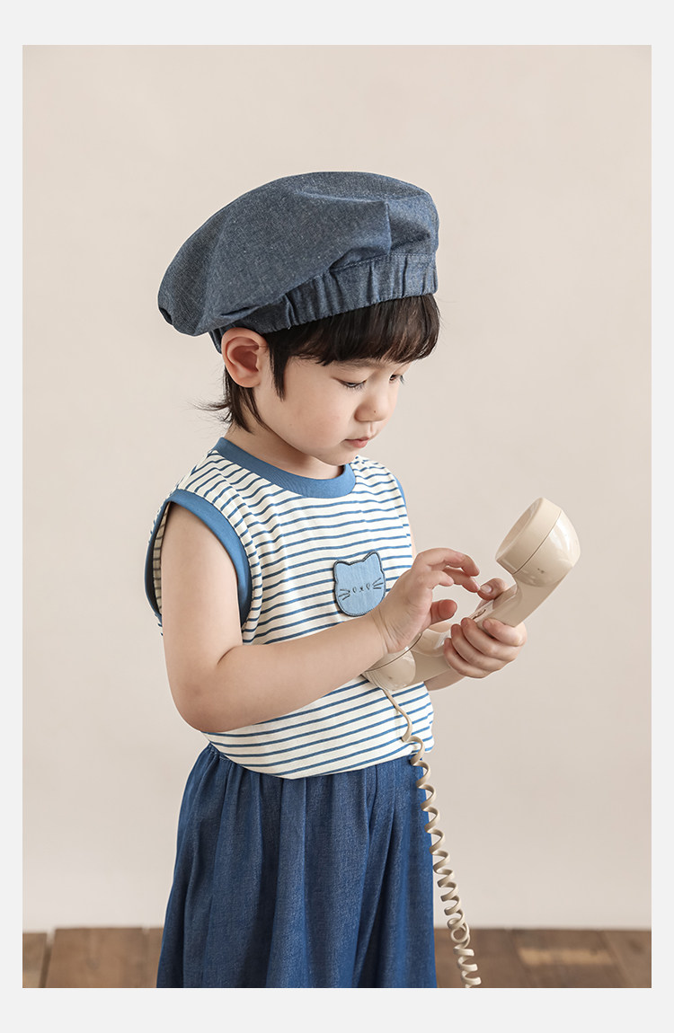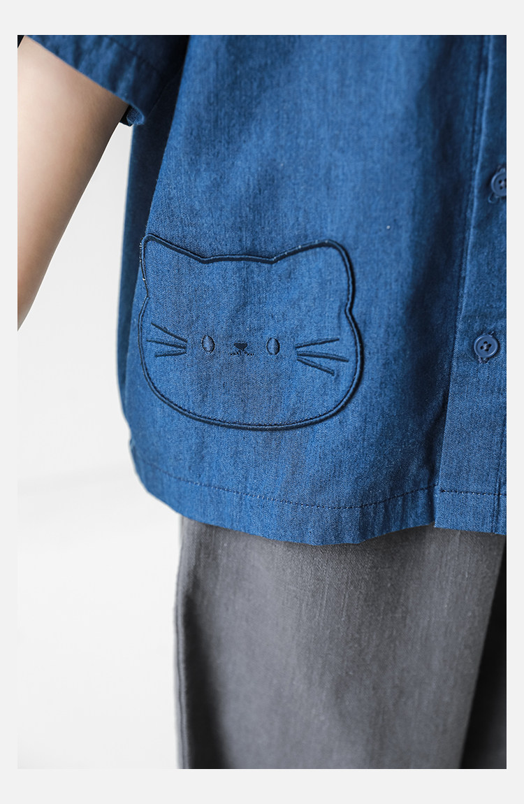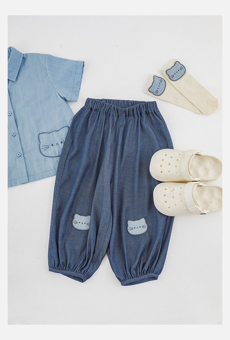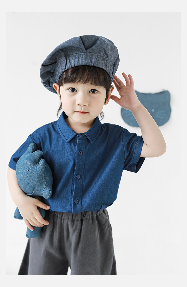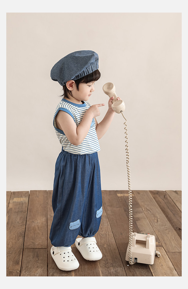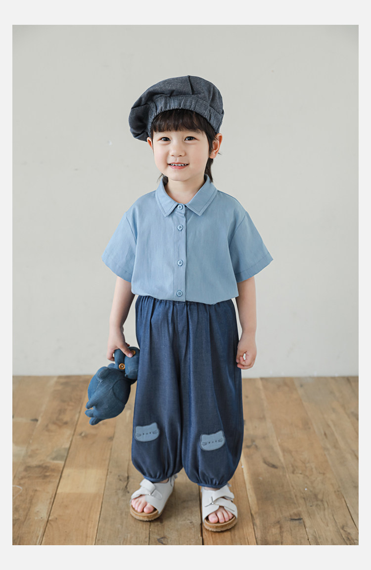 Wurib 소년 여름 새로운 폴로 옷깃 셔츠 민소매 조끼 느슨한 반바지 고양이 시리즈 세트스토어 가기