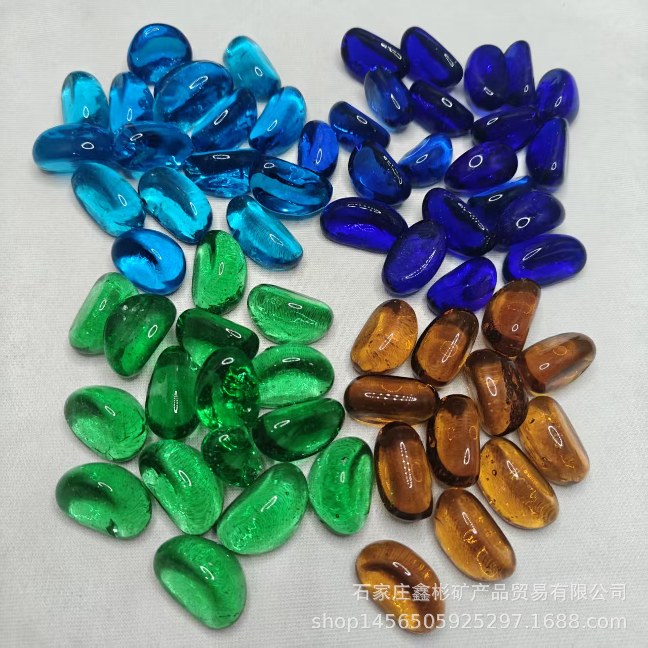 제조업체는 수조 조경 및 장식 공예품용 파란색 캐슈 스톤, 다채로운 캐슈 스톤, 고고학 유리 플랫 비즈를 공급합니다.