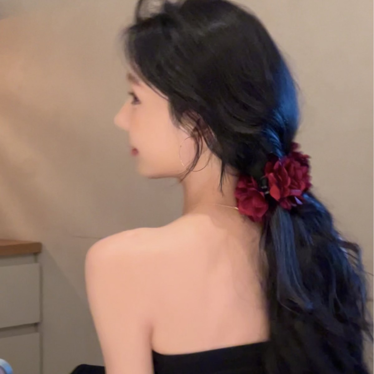 폭발 Yi Mengling 버건디 꽃 모양 바나나 클립 홀리데이 스타일 여성 하이 엔드 센스 힌드 헤드 헤어 액세서리 재고