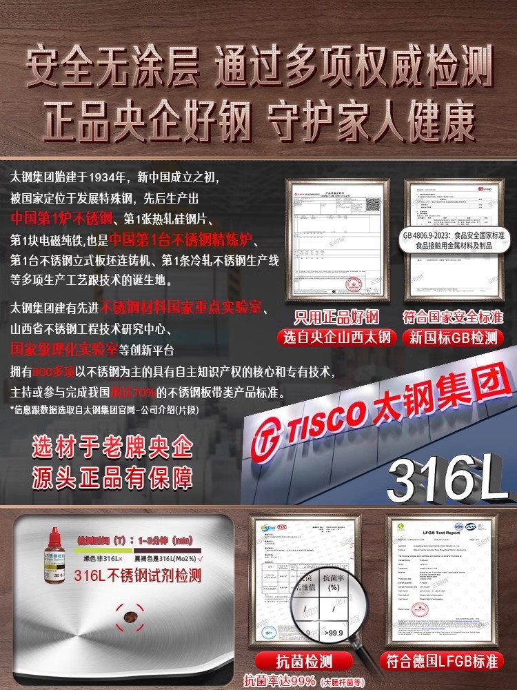 세바이스티어드 스틸 ® 316L 스테인레스 스틸 팬 식품 등급 코팅되지 않은 가스 스토브 특수 가정용 폴리 오일 프라이팬스토어 가기