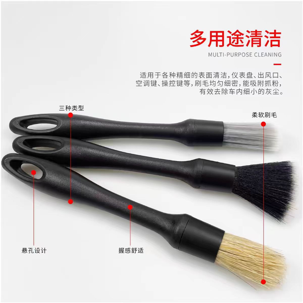 국경 간 자동차 인테리어 3피스 세트 청소 브러시 탈착식 부드러운 강모 디테일 브러시 자동차 세척 강모 나일론