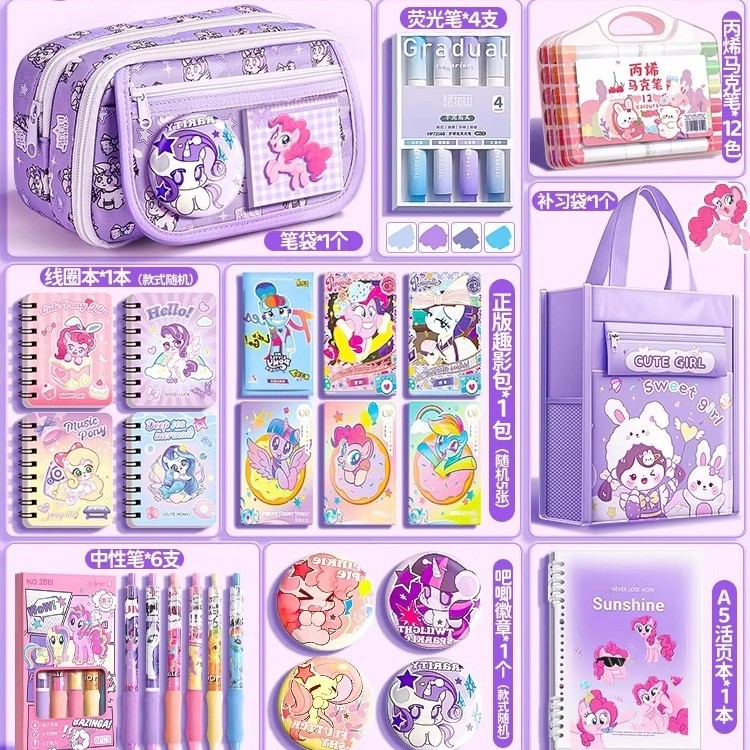 • 업그레이드된 학습 세트 [마이 리틀 포니 카드 가방 + 자 + 지우개 + 노트 포함] 보라색