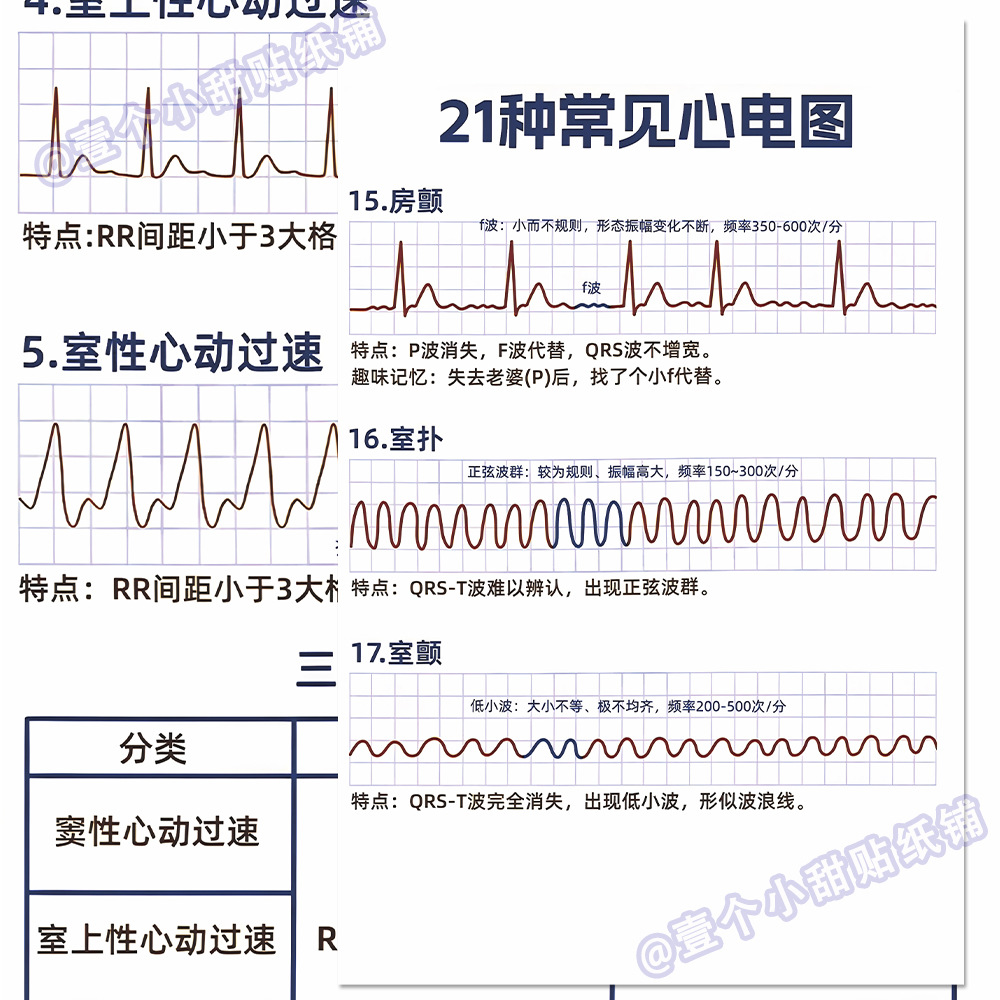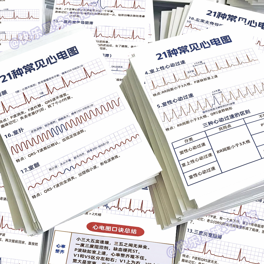 심전도 스티커 16개, 일반적인 심전도 의료 지식 분석 노트 21종, 수첩 스티커, 방수스토어 가기