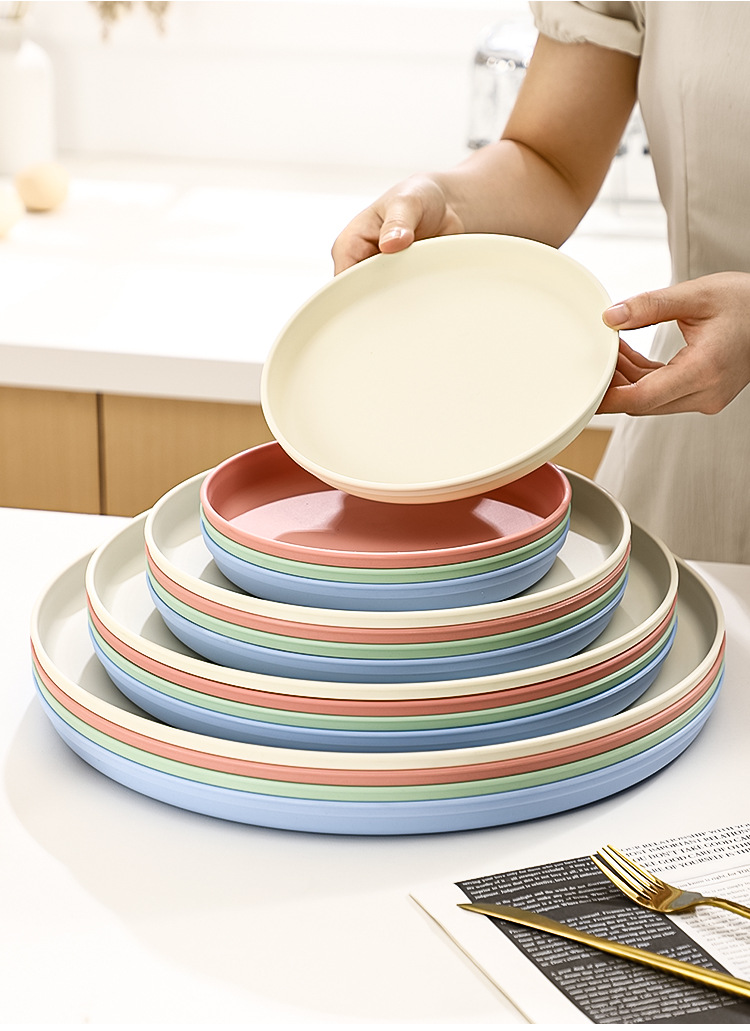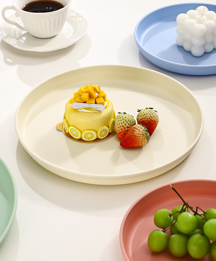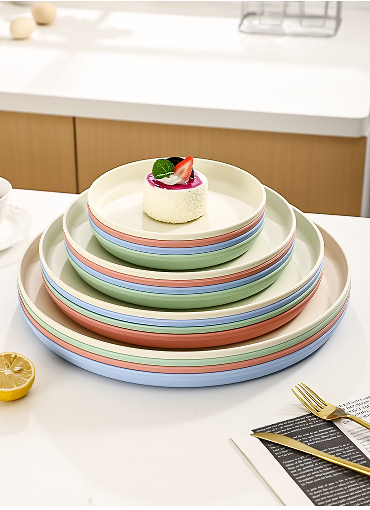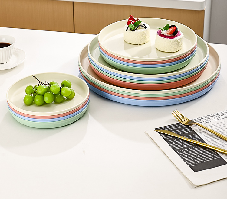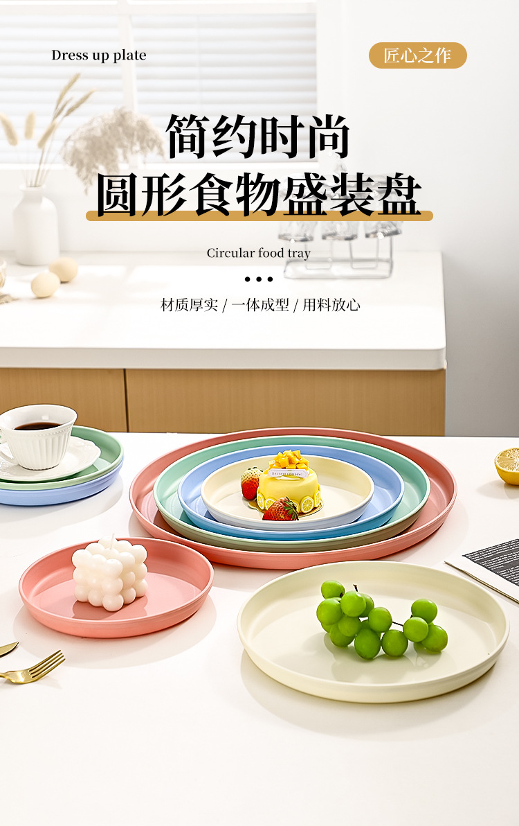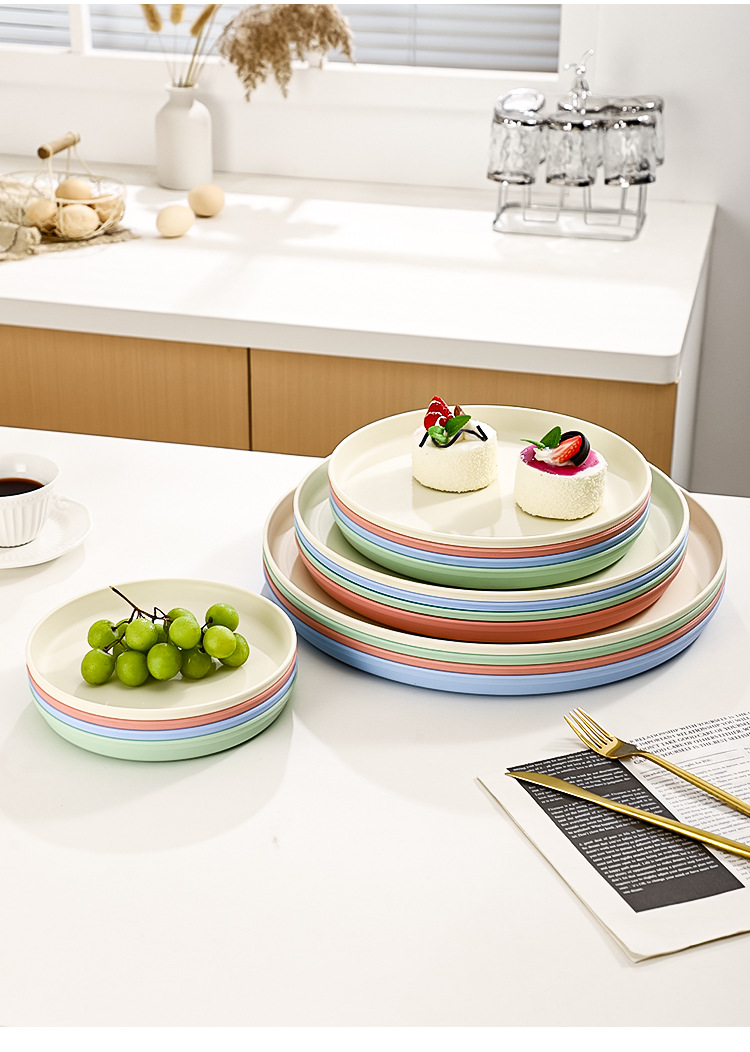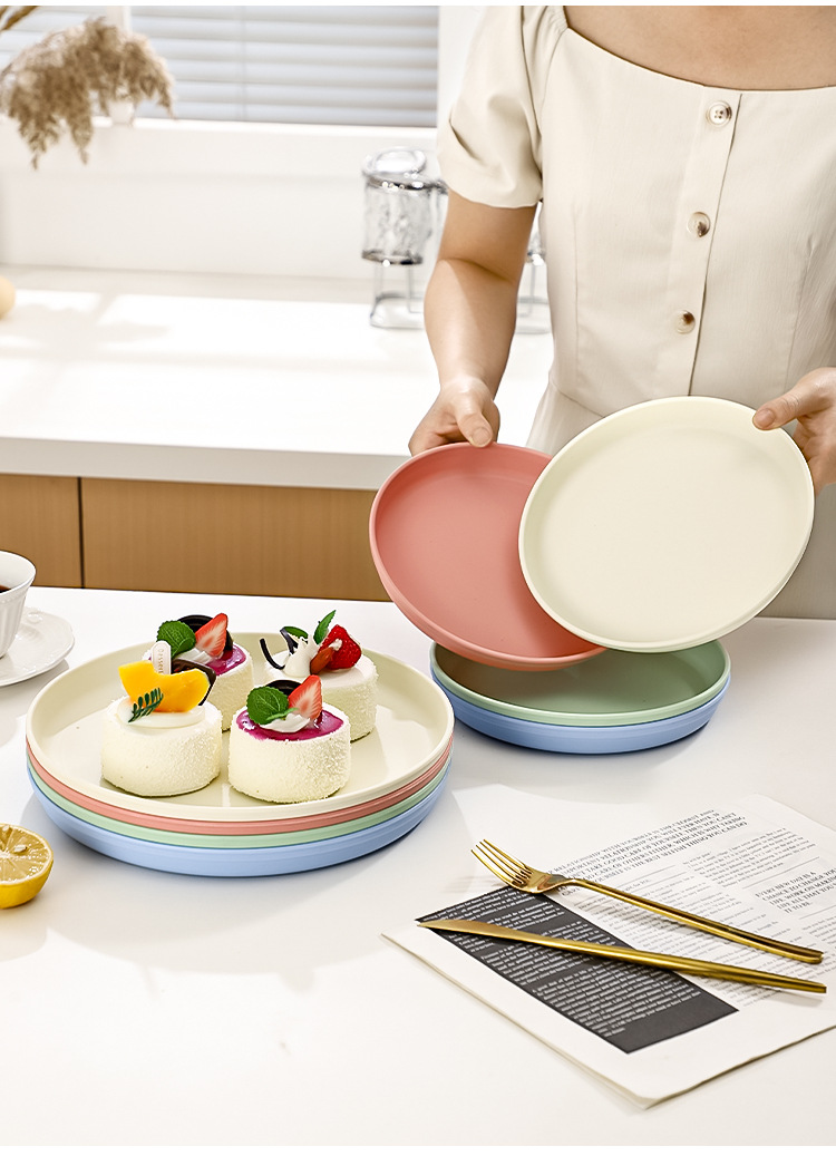 북유럽 스타일 플라스틱 트레이 두꺼운 도파민 밀짚 디너 플레이트 가정용 고가치 창의적인 과일 스낵 플레이트스토어 가기