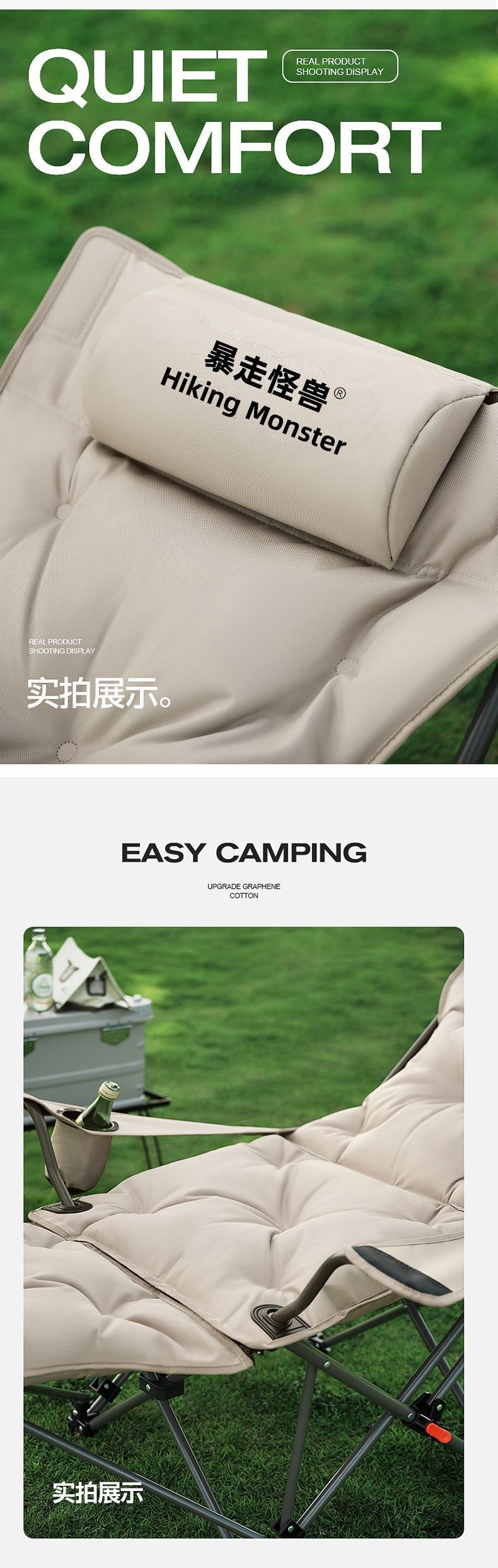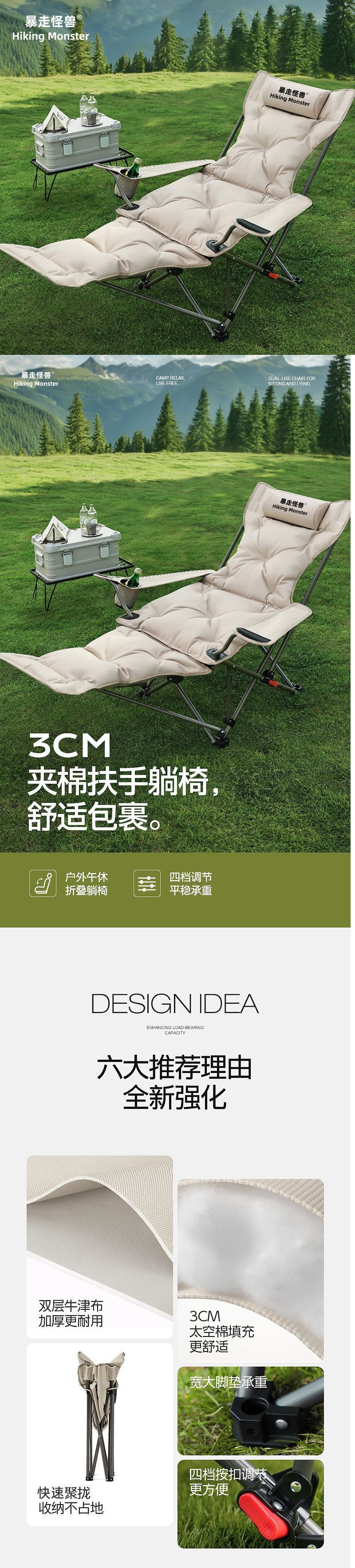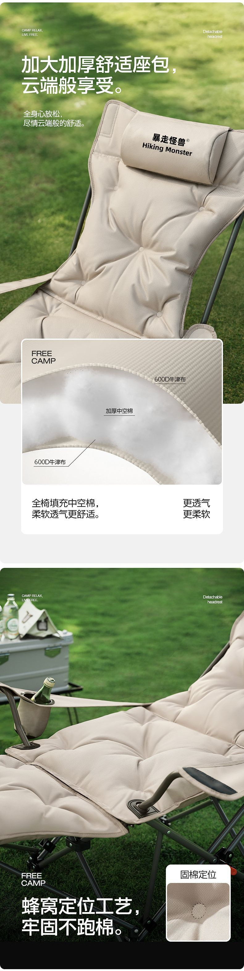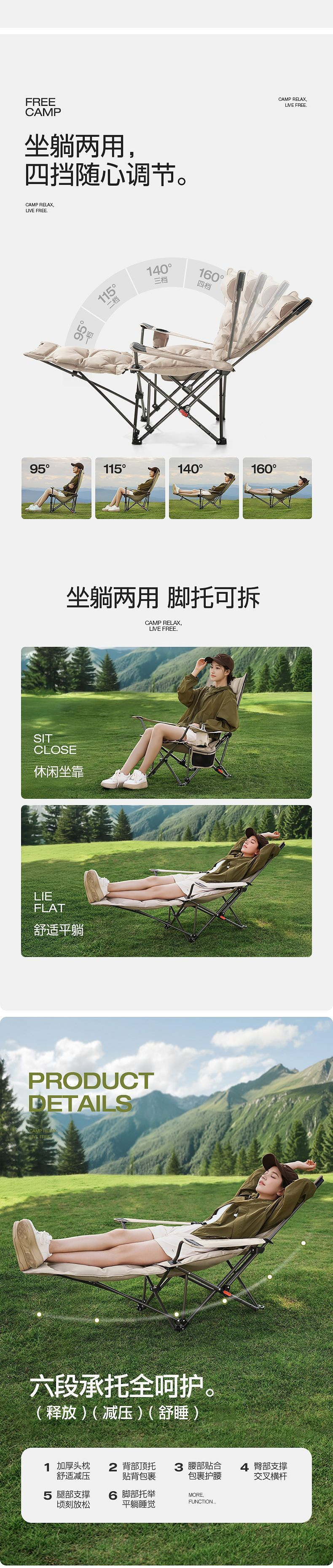 • 코튼 버전 - 카키 옐로우 [풀 체어 공간 표면 - 4단 조절 + 발판] - 업그레이드된 안락의자 [고강도 탄소강 + 6겹 두꺼워짐]
