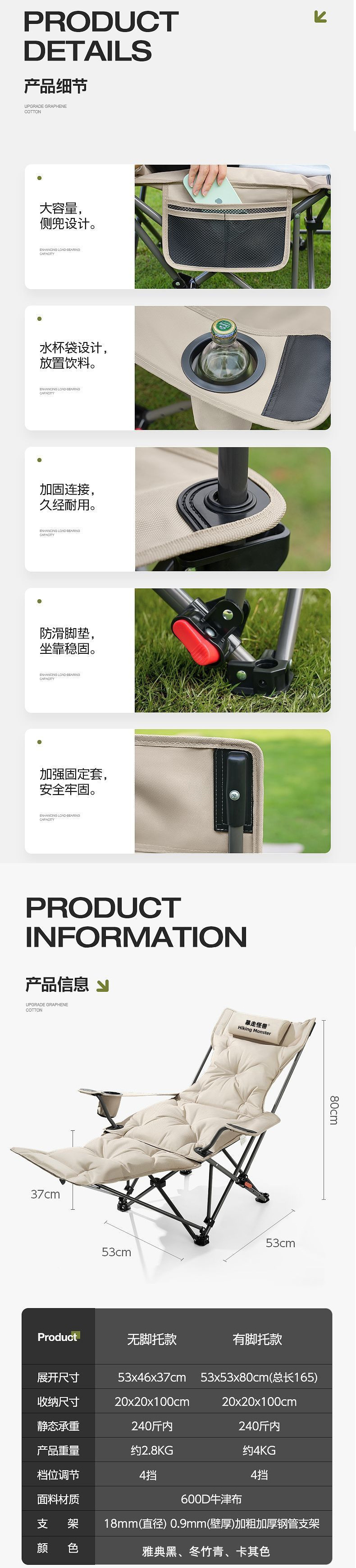 • 발판모델 - 카키옐로우 [4단조절 + 발판 -] - 업그레이드된 안락의자 [고강도 탄소강 + 6겹 두꺼워짐]