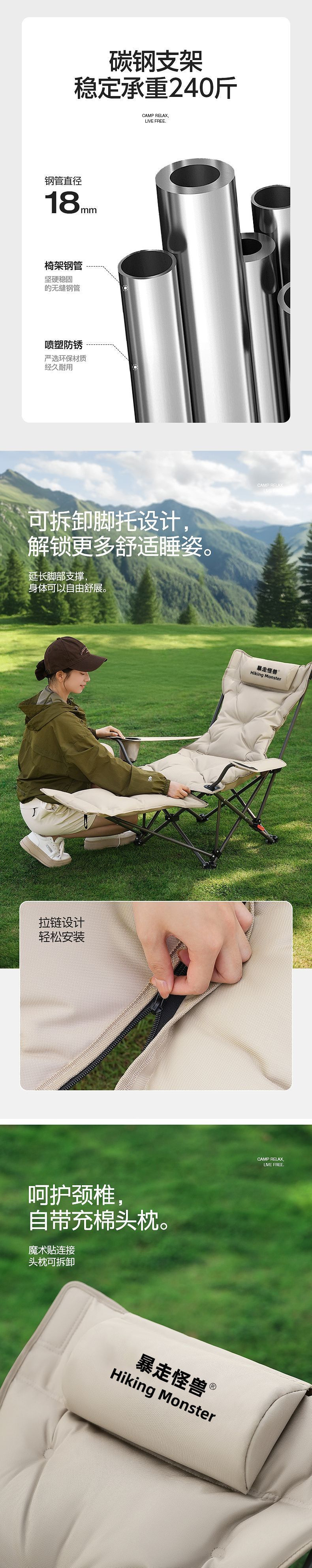 • 발판 모델 - 흑요석 블랙 [4단 조절 + 발판 - 앉고 누울 수 있음] - 업그레이드된 안락의자 [고강도 탄소강 + 6겹 두꺼워짐]
