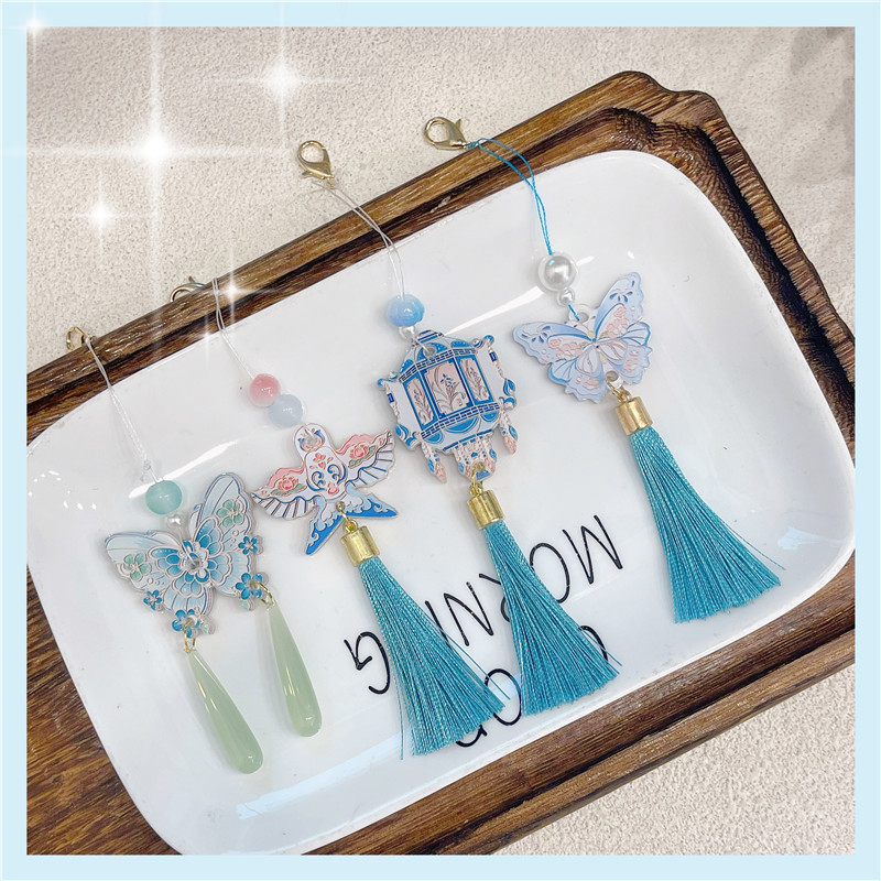 푸른 나비 연 진주 펜던트 펜던트 장식 액세서리 Hanfu 치파오 프레스 버튼 아동 의류 액세서리 버튼스토어 가기