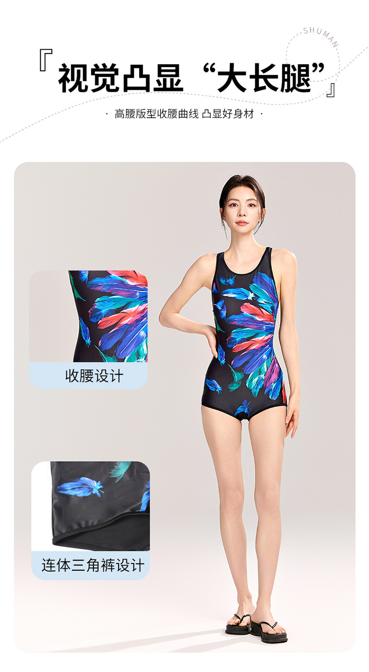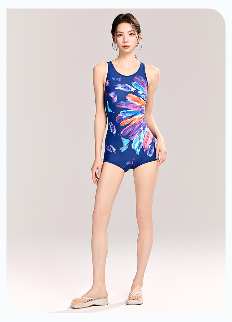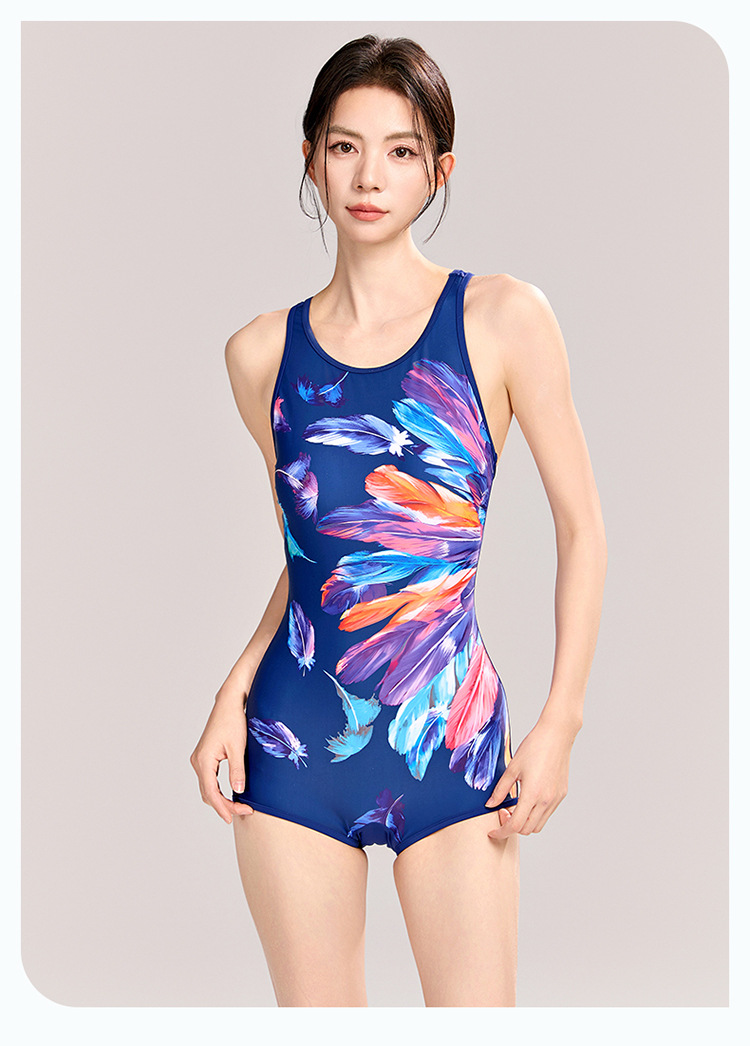 여성용 크로스보더 스포츠 수영복, 원피스 복서 레이싱 트레이닝 수영장, 배 커버, 슬리밍, 플러스 사이즈 온천 수영복스토어 가기