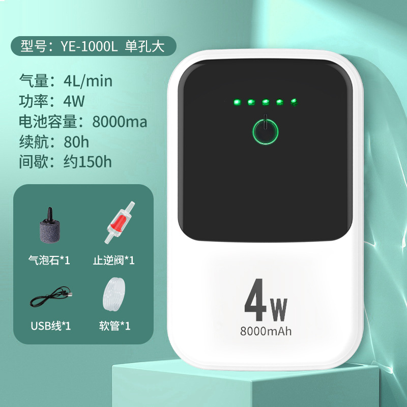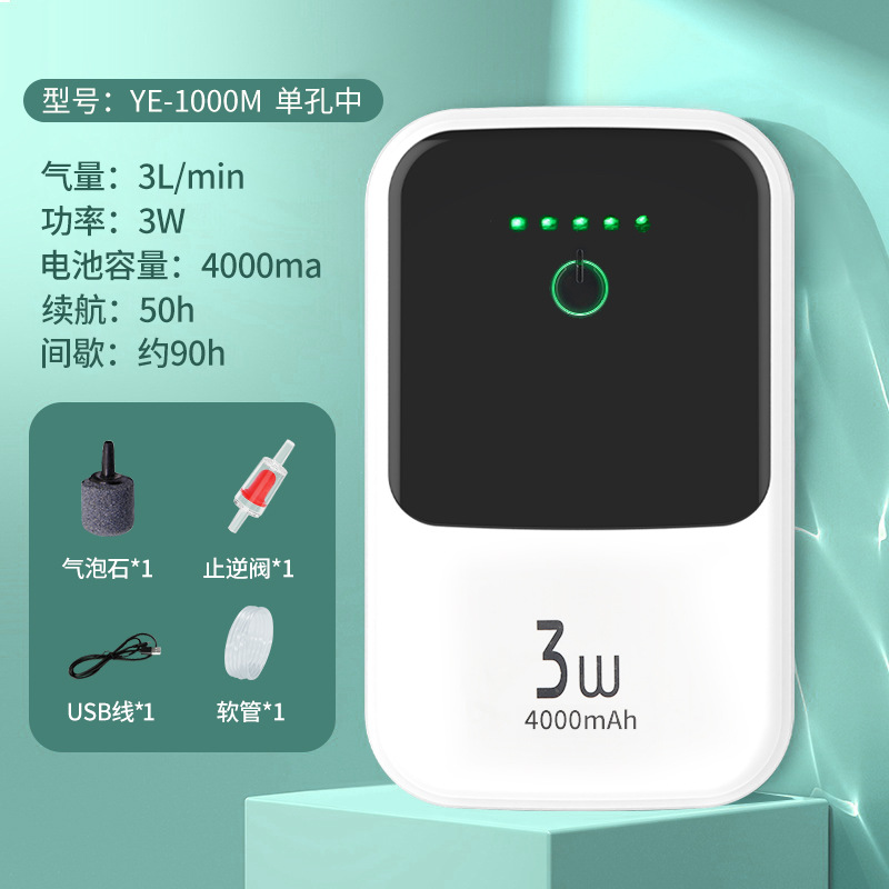 • [업그레이드된 풍량 2.0] 배터리 수명 150시간/정확한 풍량/YE-1000L 단일 구멍 4W + 에어 스톤
