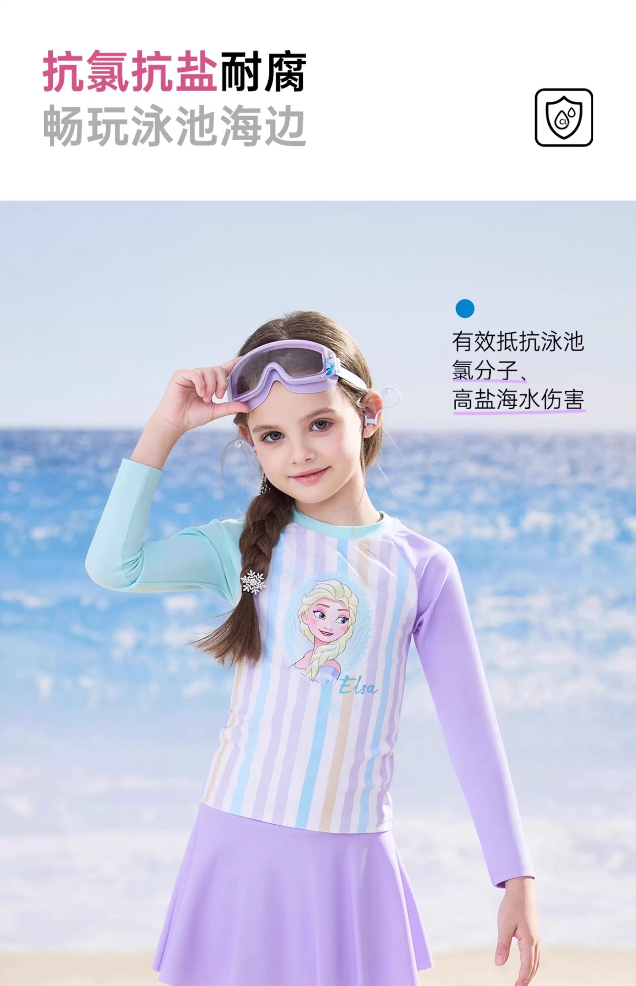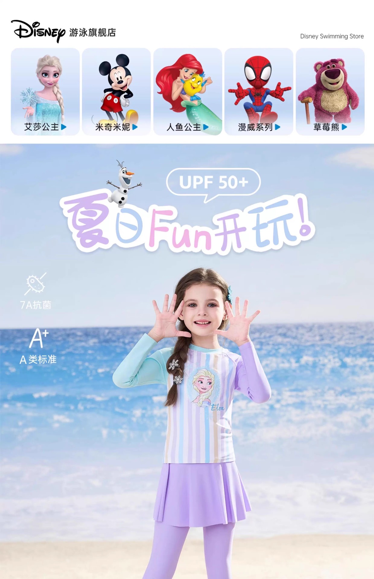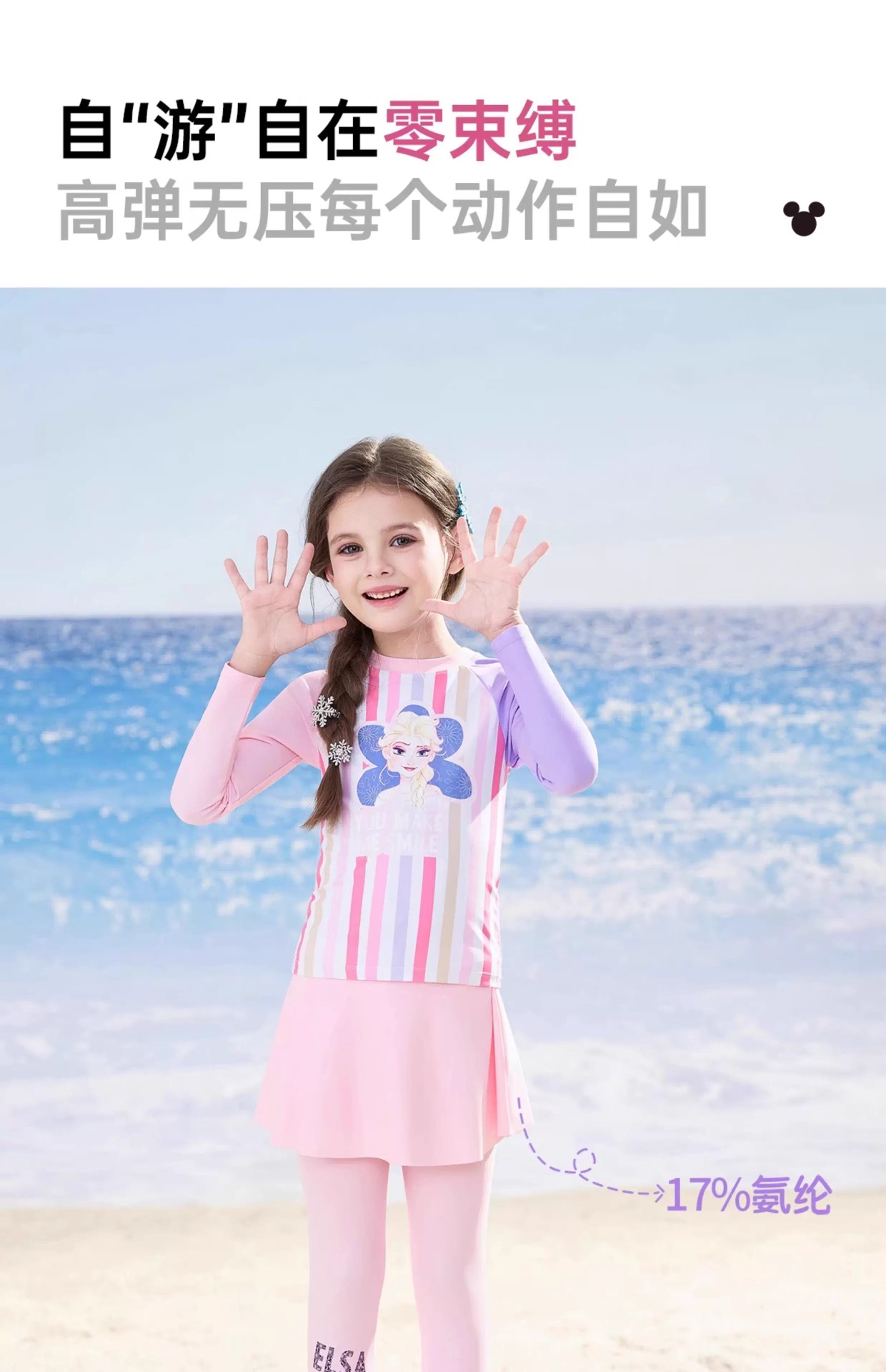 디즈니 아동 수영복 여아 중대형 아동 2025 신형 긴팔 바지 스플릿 자외선 차단 수영복 여중생스토어 가기