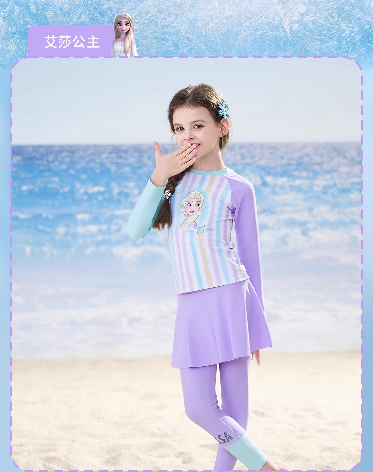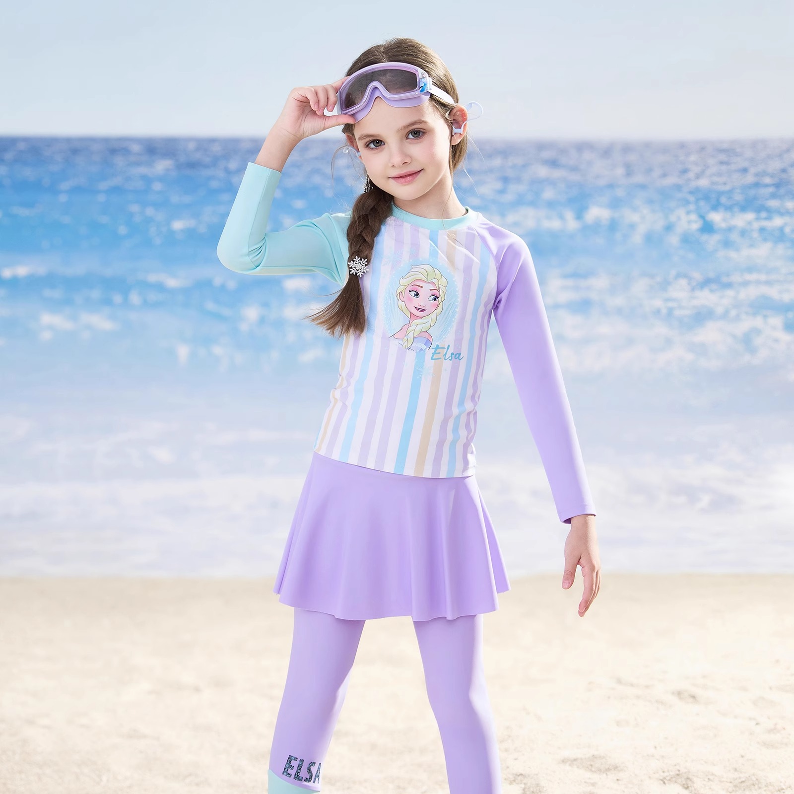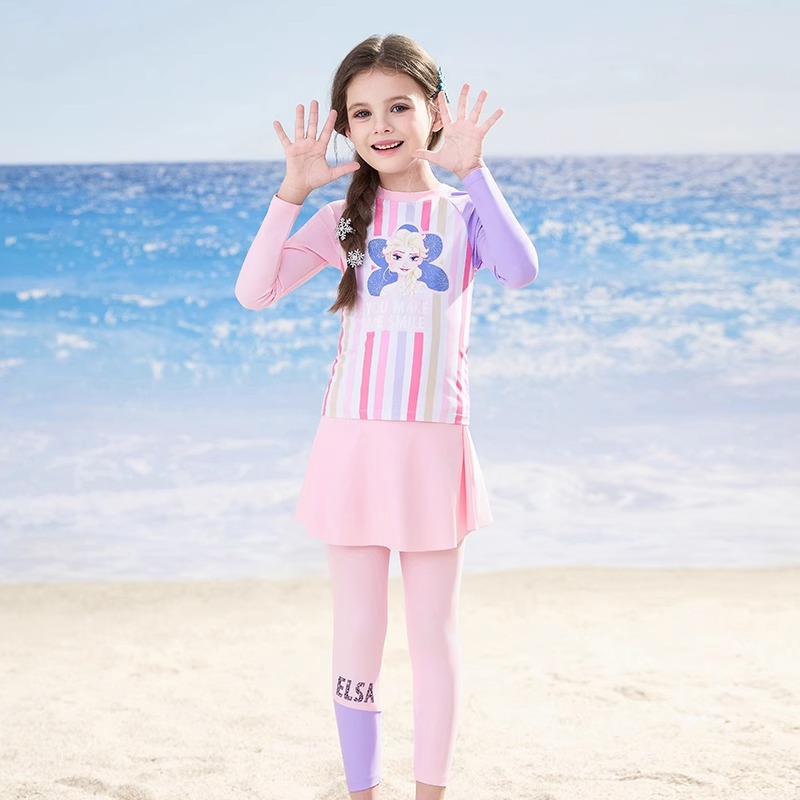 디즈니 아동 수영복 여아 중대형 아동 2025 신형 긴팔 바지 스플릿 자외선 차단 수영복 여중생