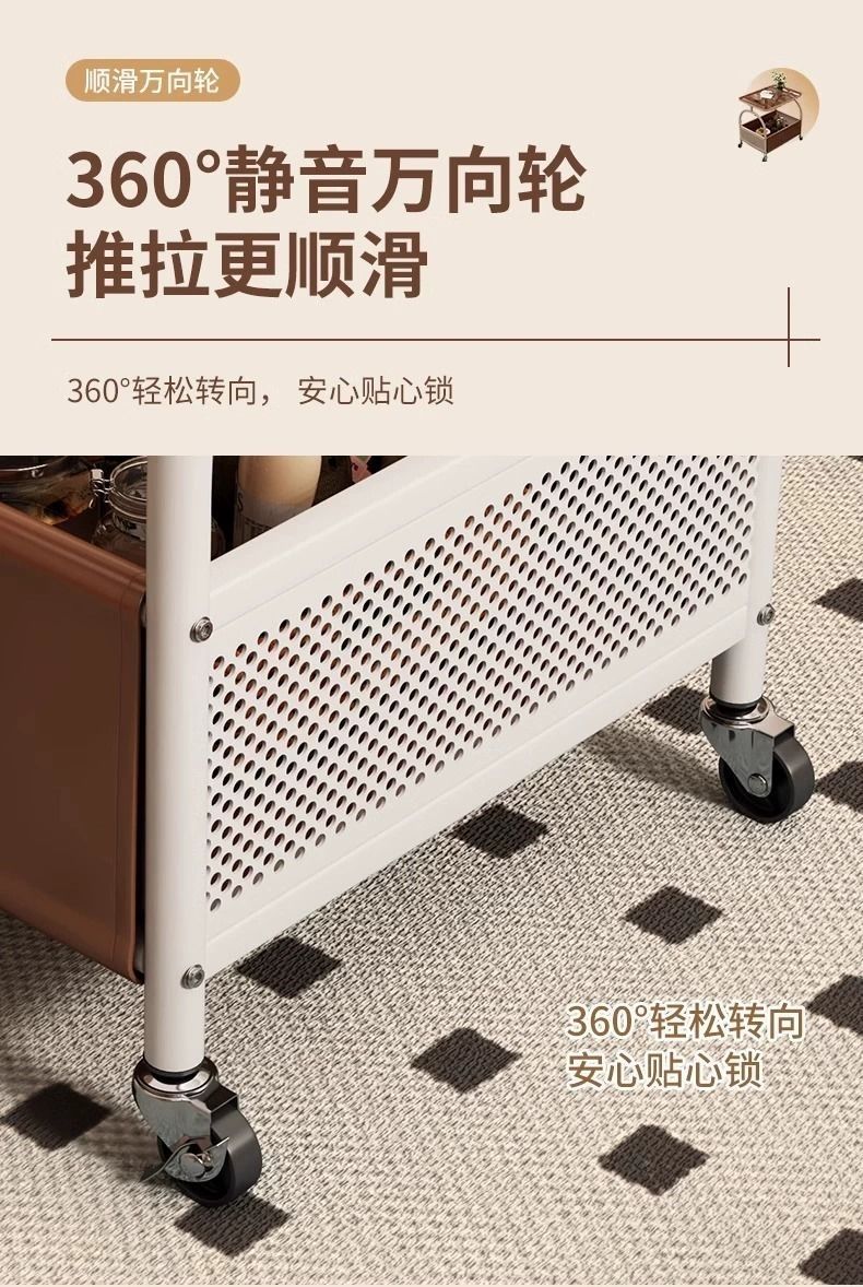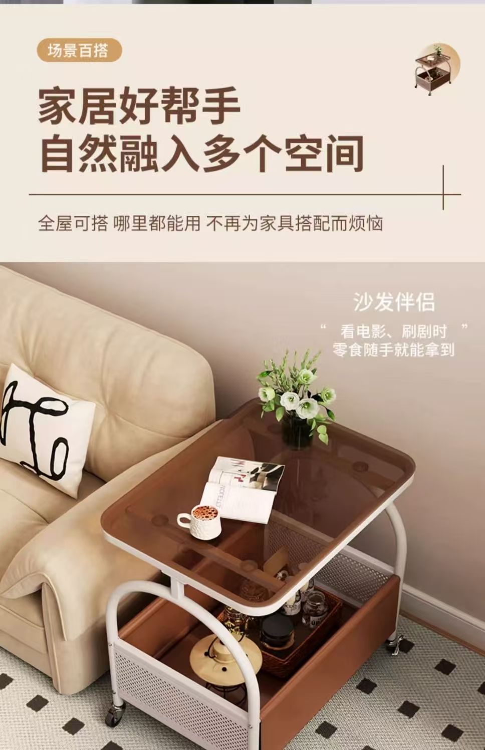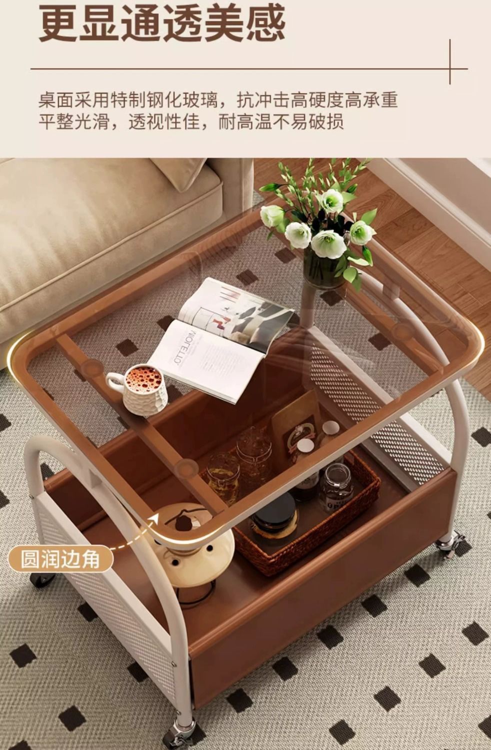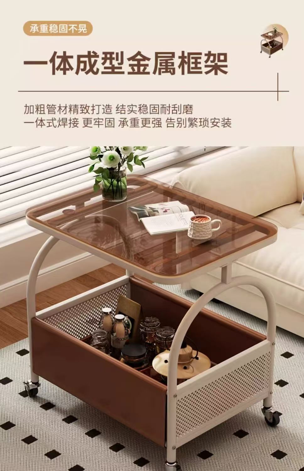 공장 도매 침대 옆 탁자 크림 스타일 유리 이동식 선반 바퀴 달린 사이드 테이블 간단한 작은 커피 테이블 트롤리스토어 가기
